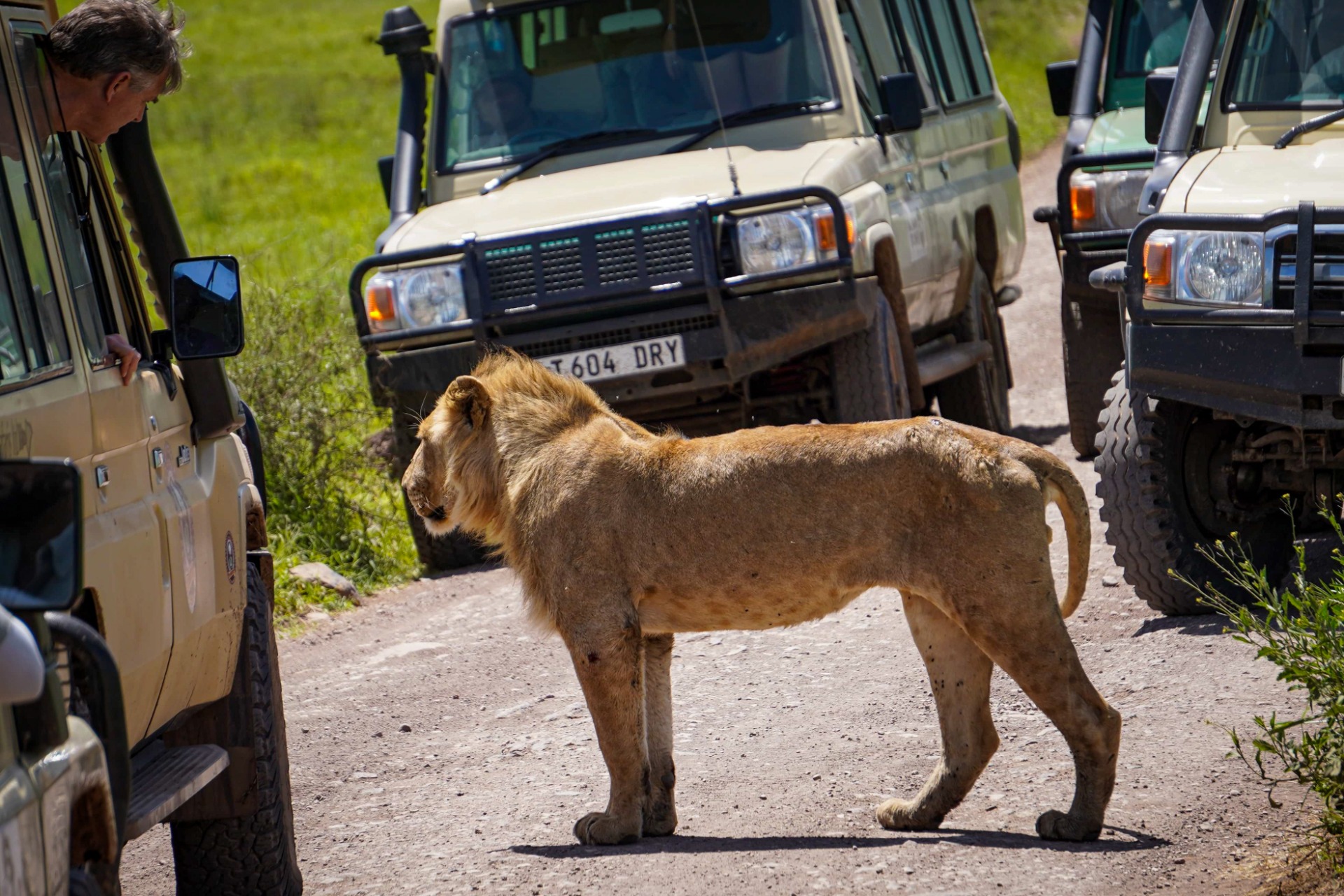 We continued along the road and were stopped as a juvenile male lion stood his ground in the middle of the road.