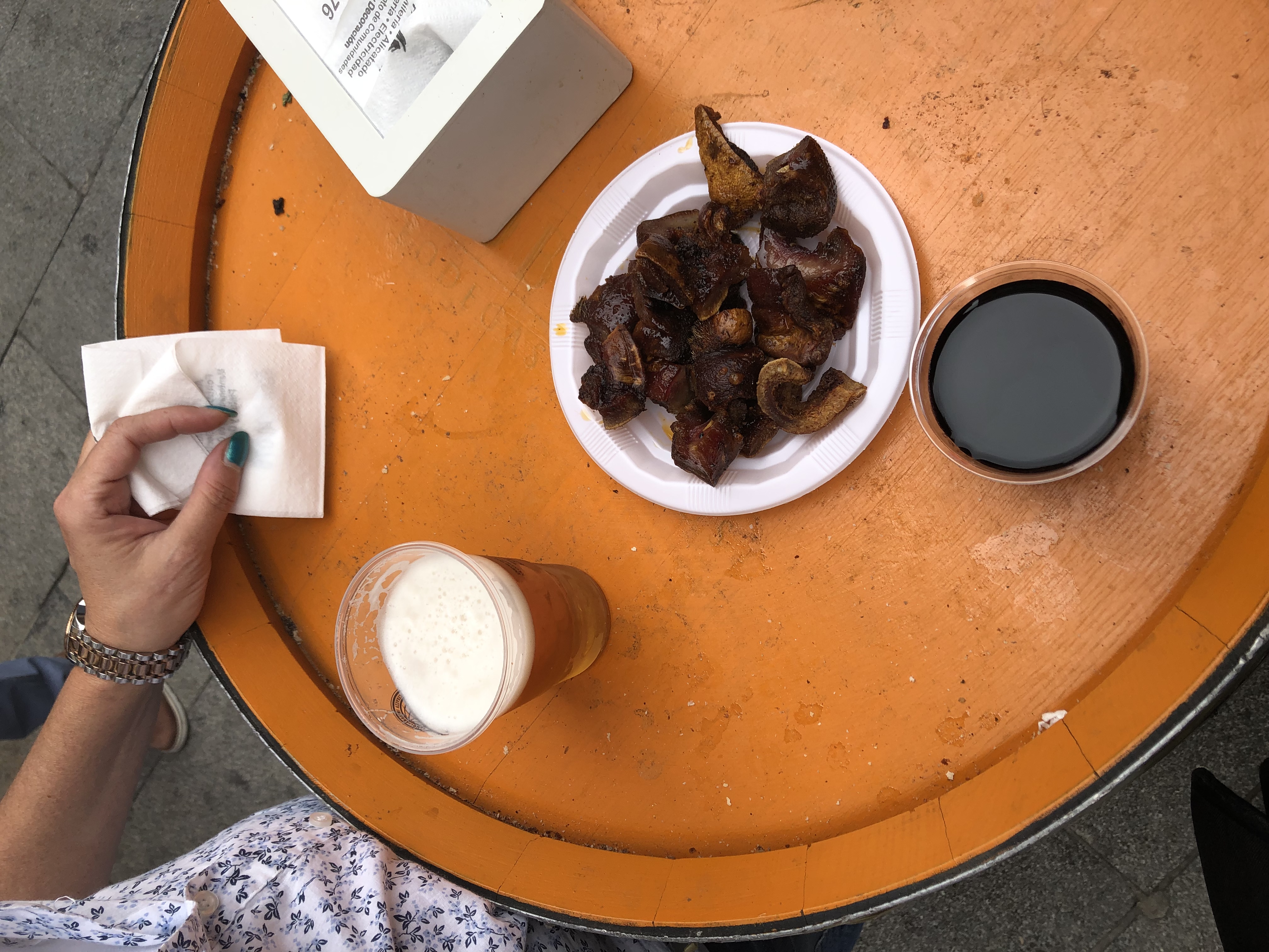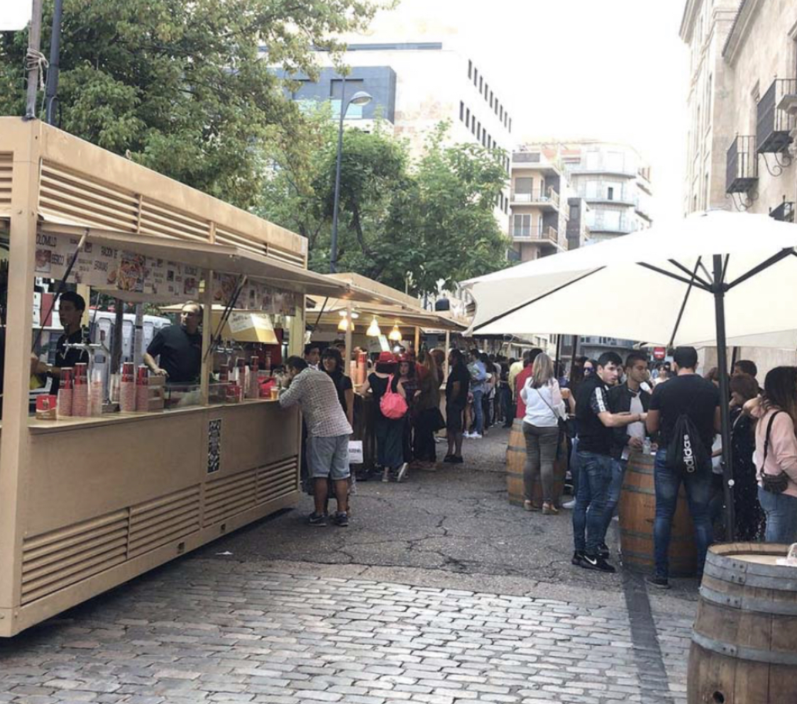 After replenishing strength with these tapas we continued with our visit on the first day, the street took us directly to the Plaza Mayor, also very changed looking with a stage for the daily performances of musical groups and various activities that composed the festivities, it was impressive the people who gathered and that said Plaza together with that of Madrid are twins and very spacious, since the architect who built them made them the same, the first was that of Salamanca.