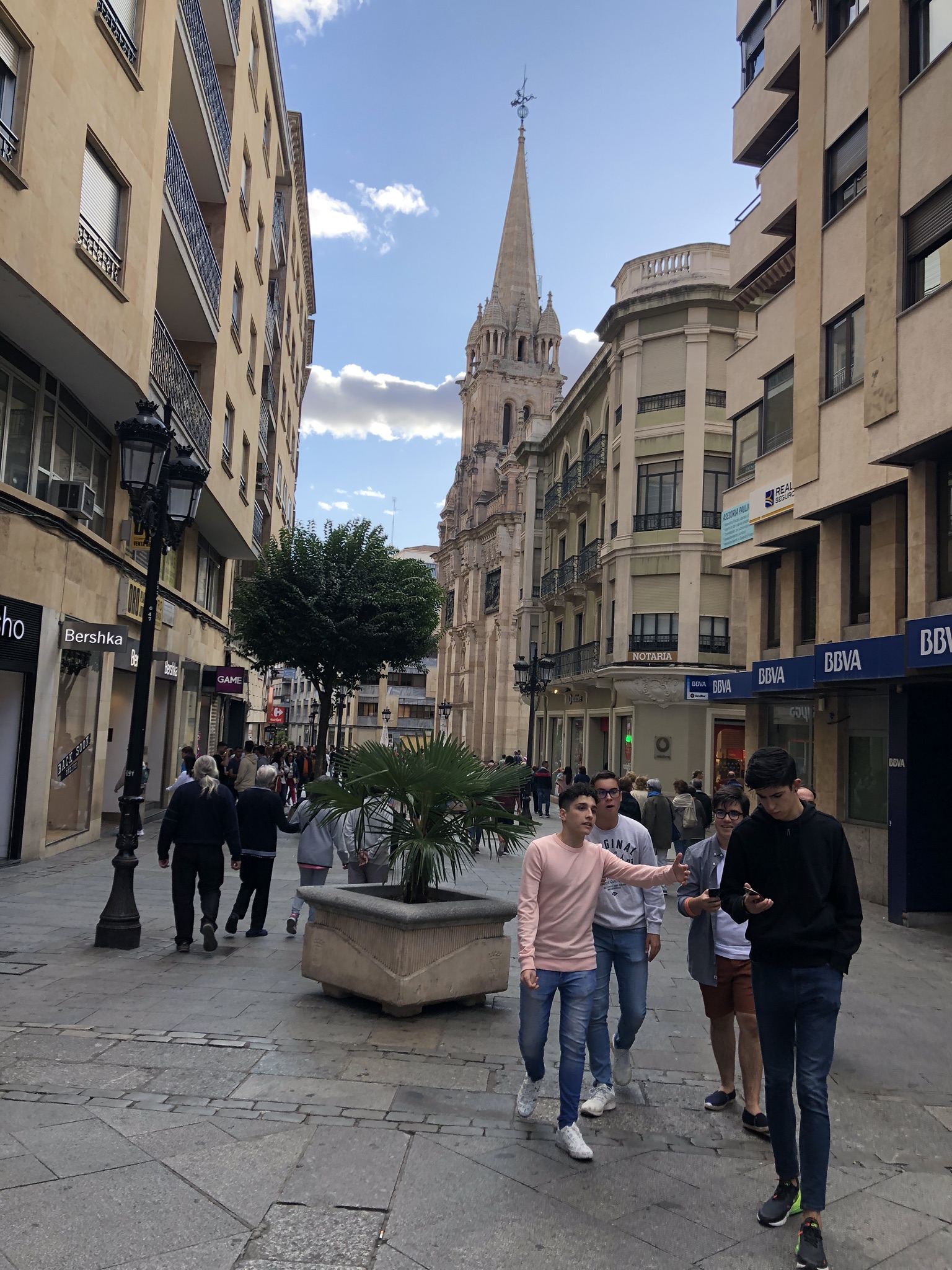 Our apartment was in the modern part, but only 12 minutes walk from the historic center of Salamanca so we left our bags and headed to enjoy the old city, as soon as you enter one of the streets that take you to the Plaza Mayor you notice the change in the architecture and layout of the streets, and we had the surprise and the luck that were the Major Festivals and the beginning of the university course with what there were more people than usually visits Salamanca.