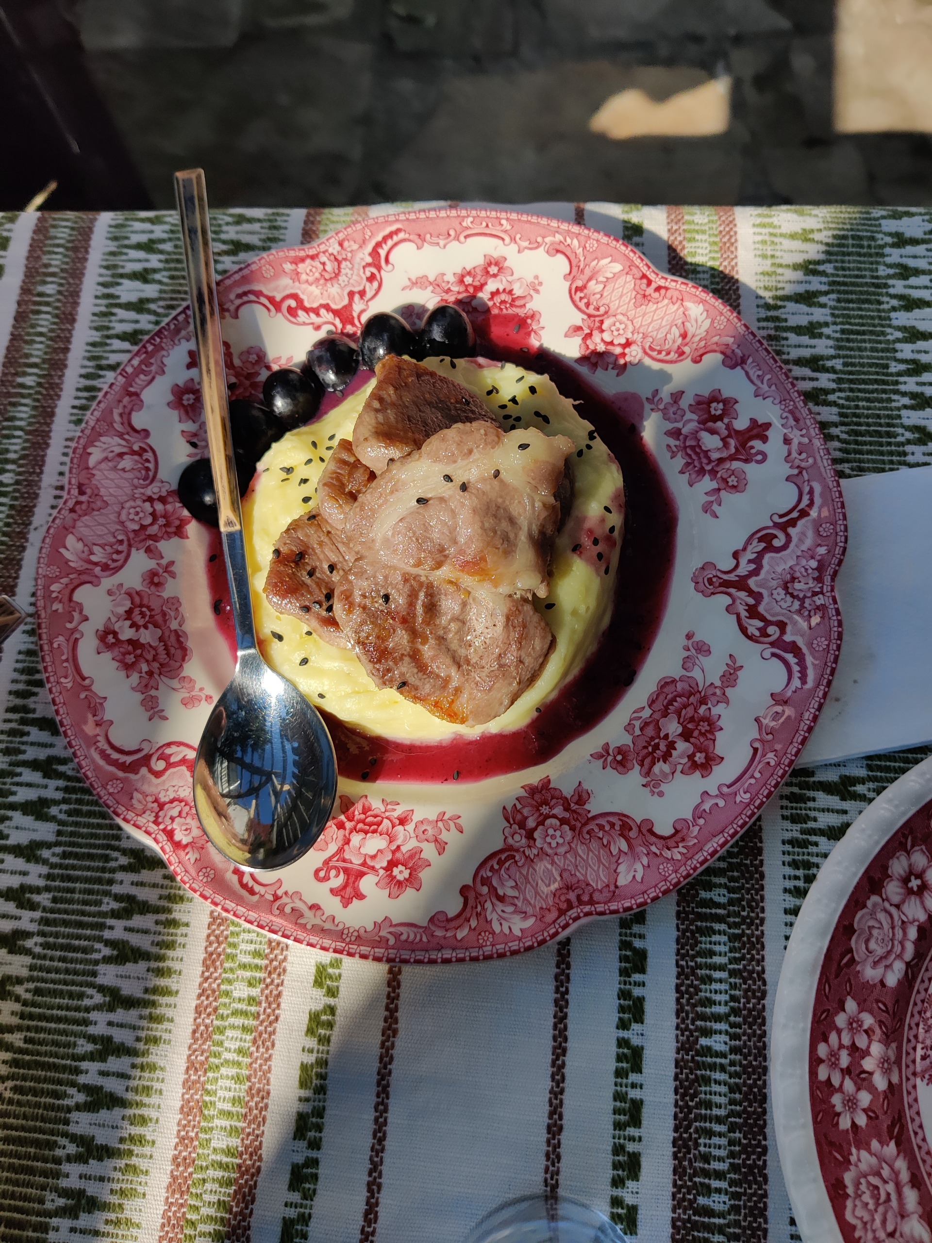 This was our favorite restaurant in Mestia. Their Kubdari (meat pie) is a must try Svanetian dish and several other dishes that make use of Svanetian spices. Among the best dishes we tried are: dumplings in a pot, Tashmjabi (mashed potatoes with cheese), ribs with adjika spices, ostri (beef in spicy tomato sauce), Ajapsandali (vegetables similar to ratatouille).