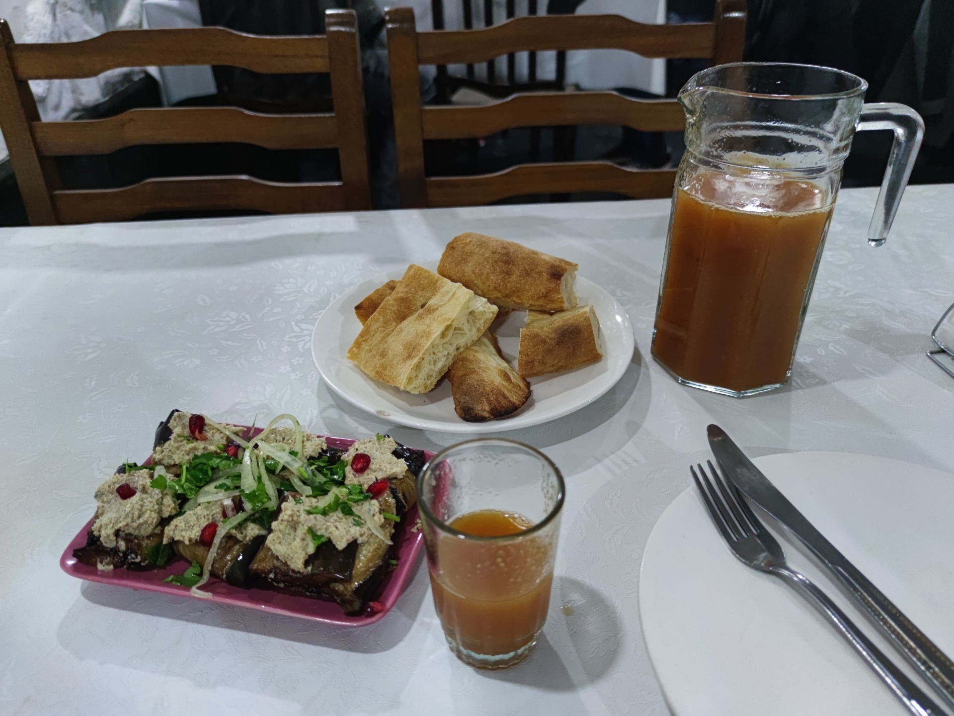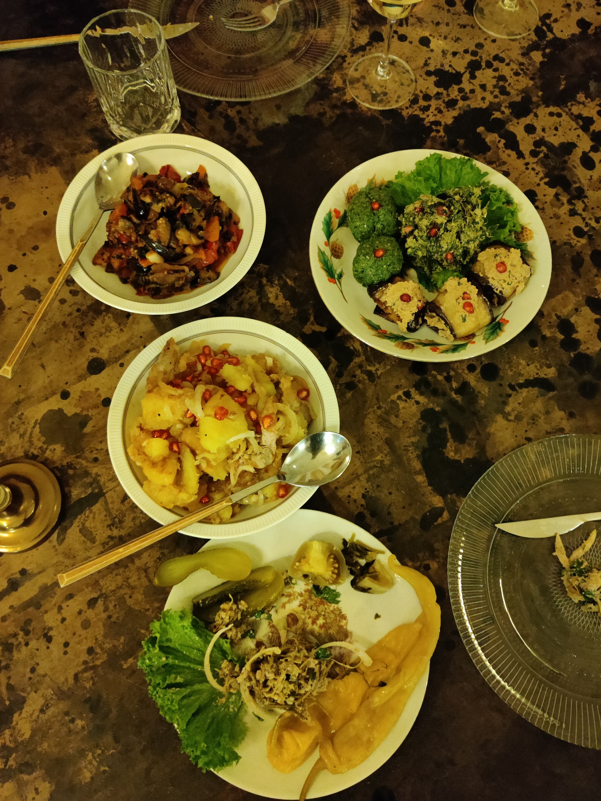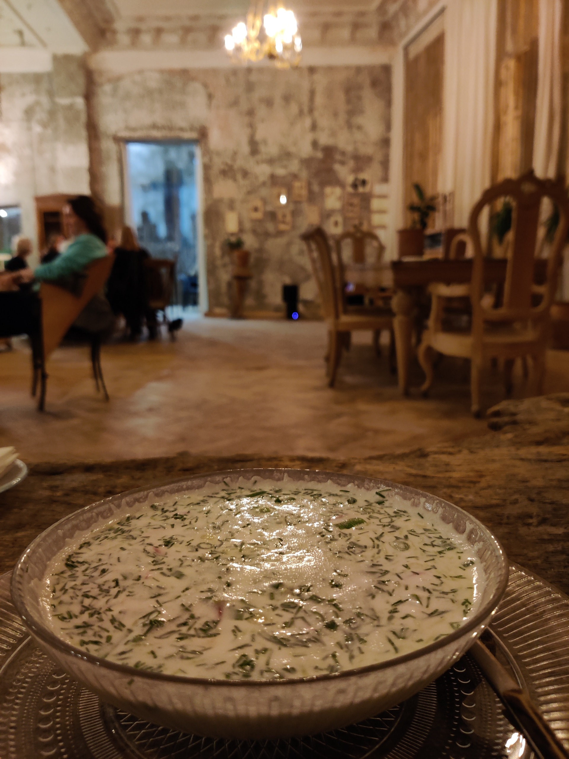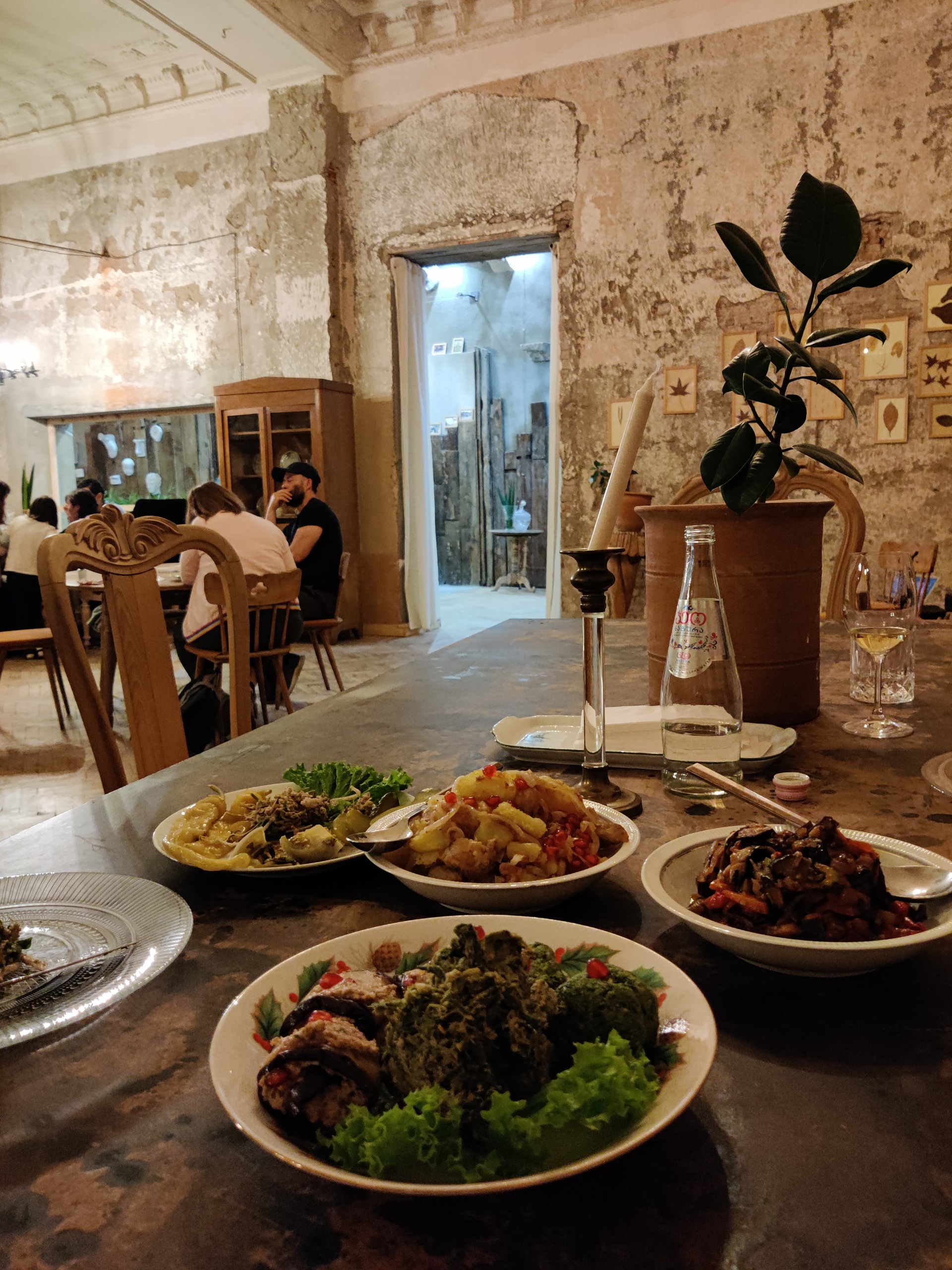 A hidden restaurant but with gorgeous interiors and a romantic ambiance. We had a feast of phkali, pickles, Ajapsandali (Georgian ratatouille), innards with nuts (so good!), and an assortment of desserts.
