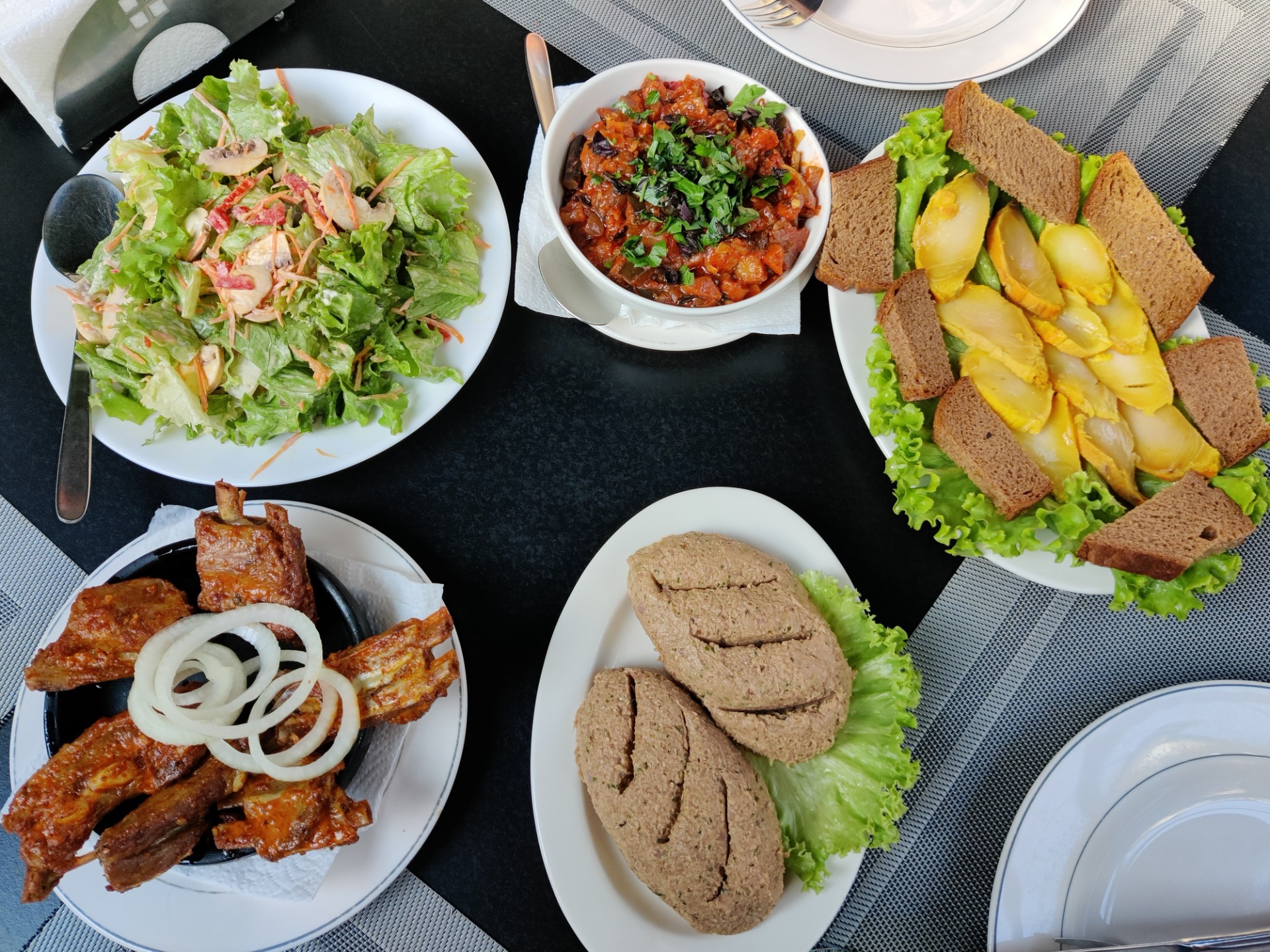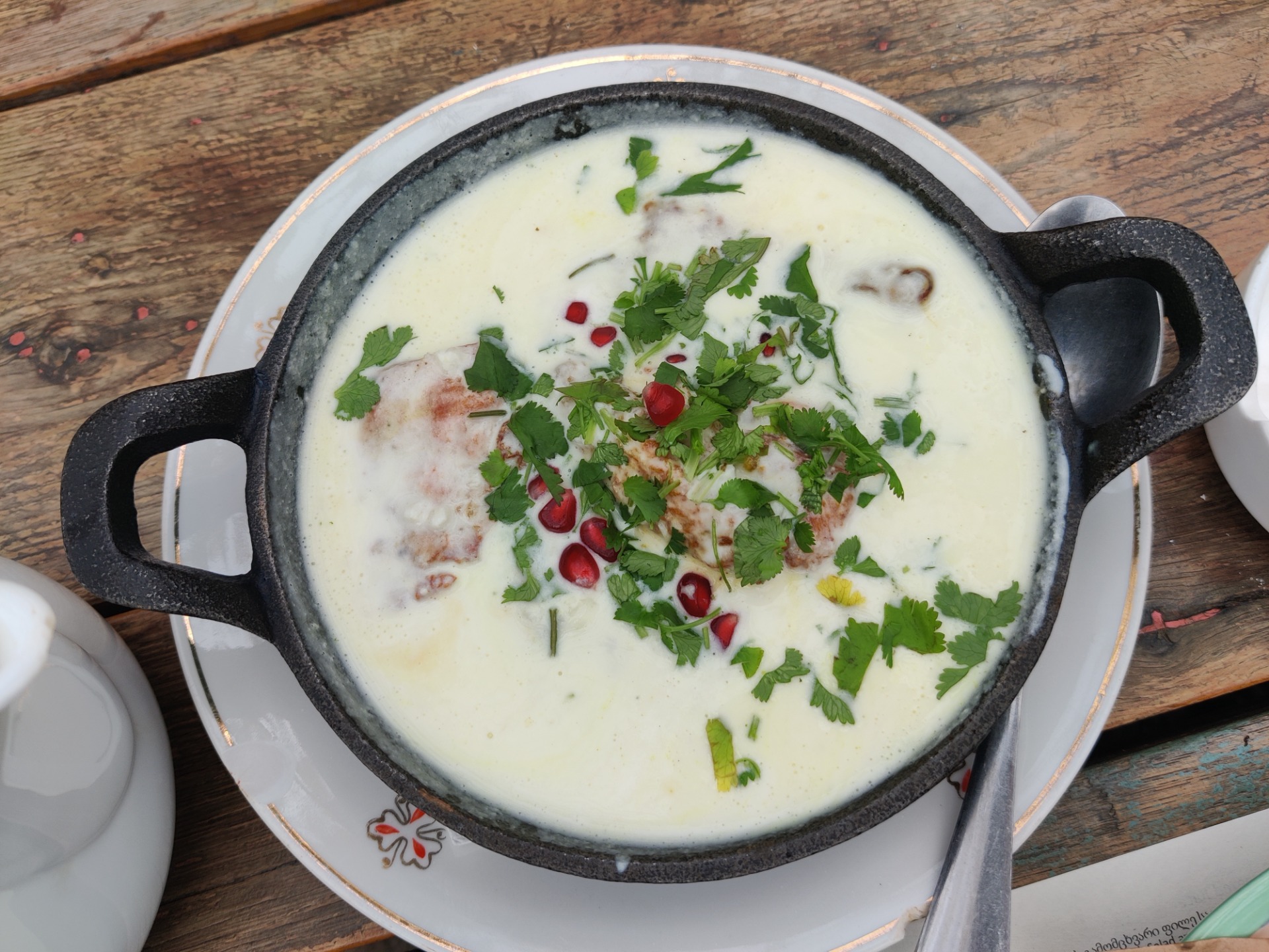 Must try: Beef kharcho with walnuts, phkali, pork sausages and a liter of compote