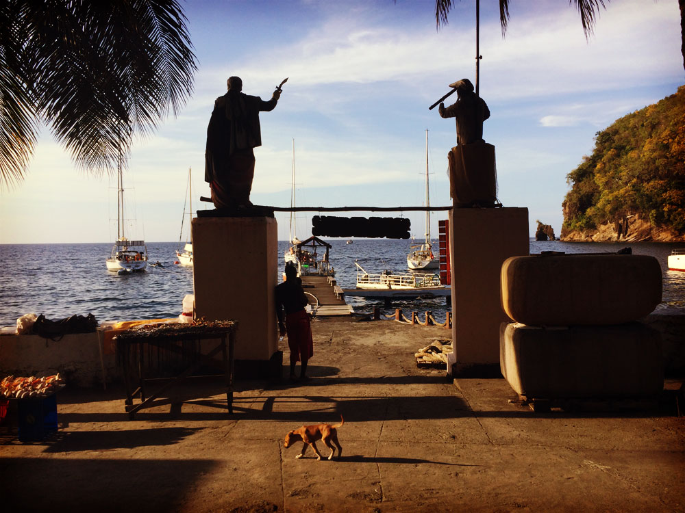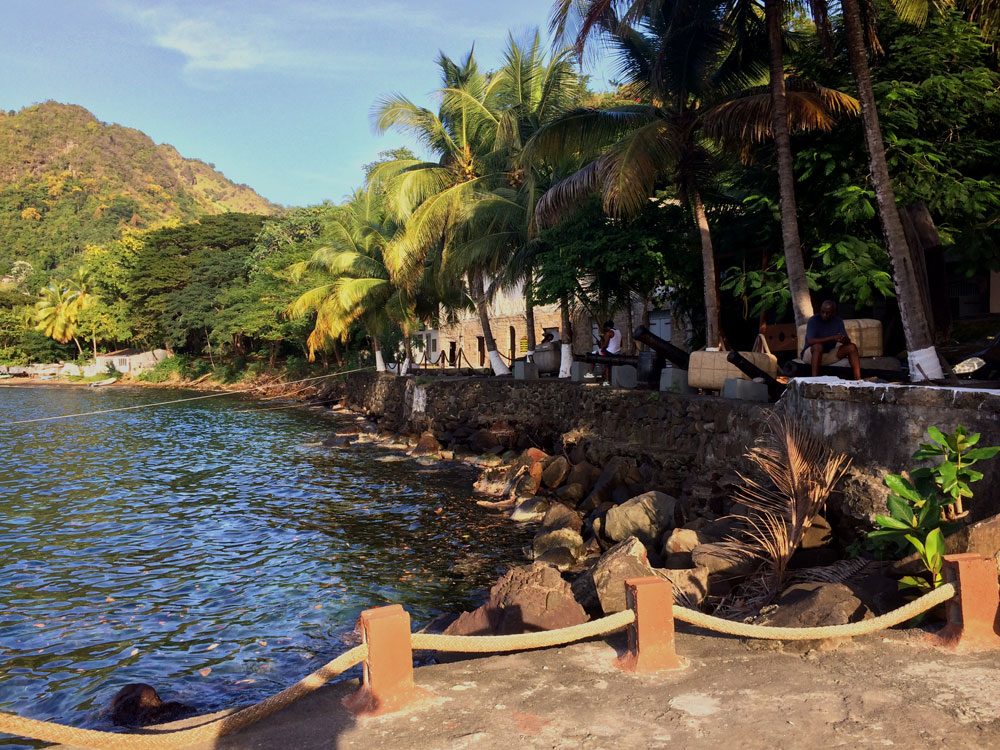 Wallilabou has a real special charm unlike any other bay I visited around St Vincent. It is not only beautifully crafted by the creation, with tall cliffs towering on both sides, calm clear waters, and a special kind of soft clear light, but also has the capacity ti deliver the visitor to another era, so it feels.