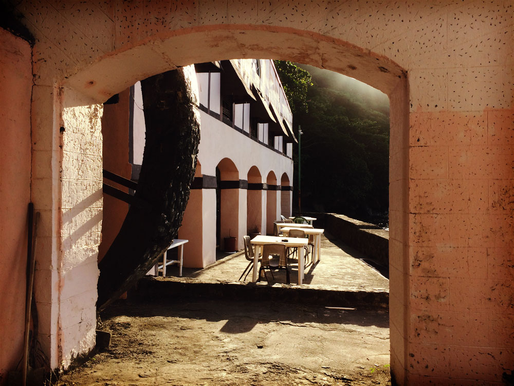 It is not the right time to hang out on the waterfront of Wallilabou. Wait till they leave around 3-4 PM or arrive before they do at 11-12 AM. These hours, when the bay is nearly back to what it used to be before Hollywood arrived, are really magical.