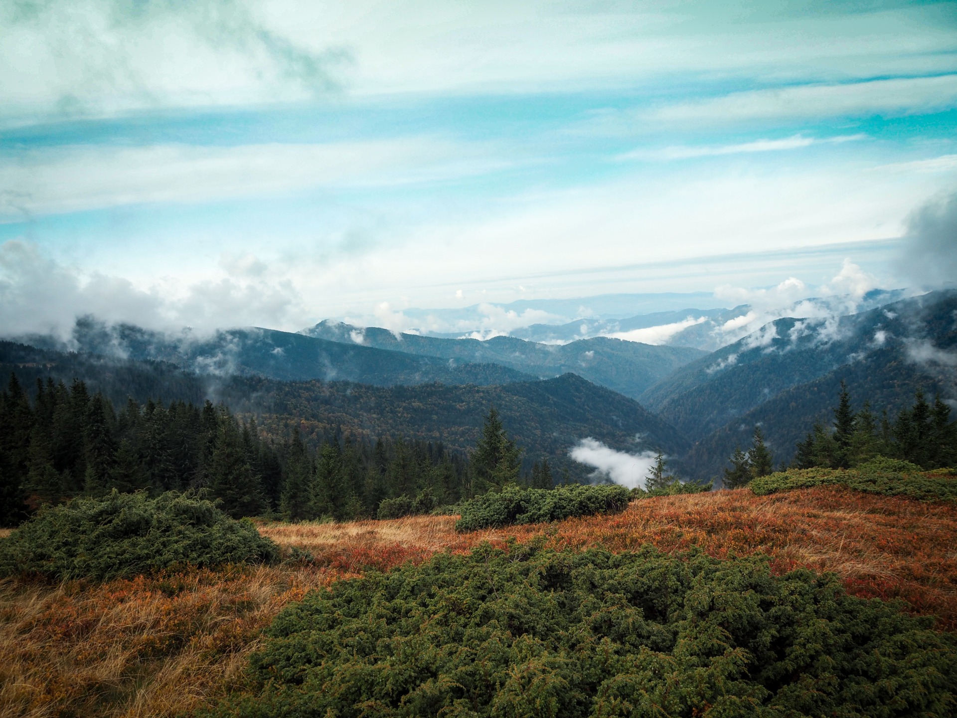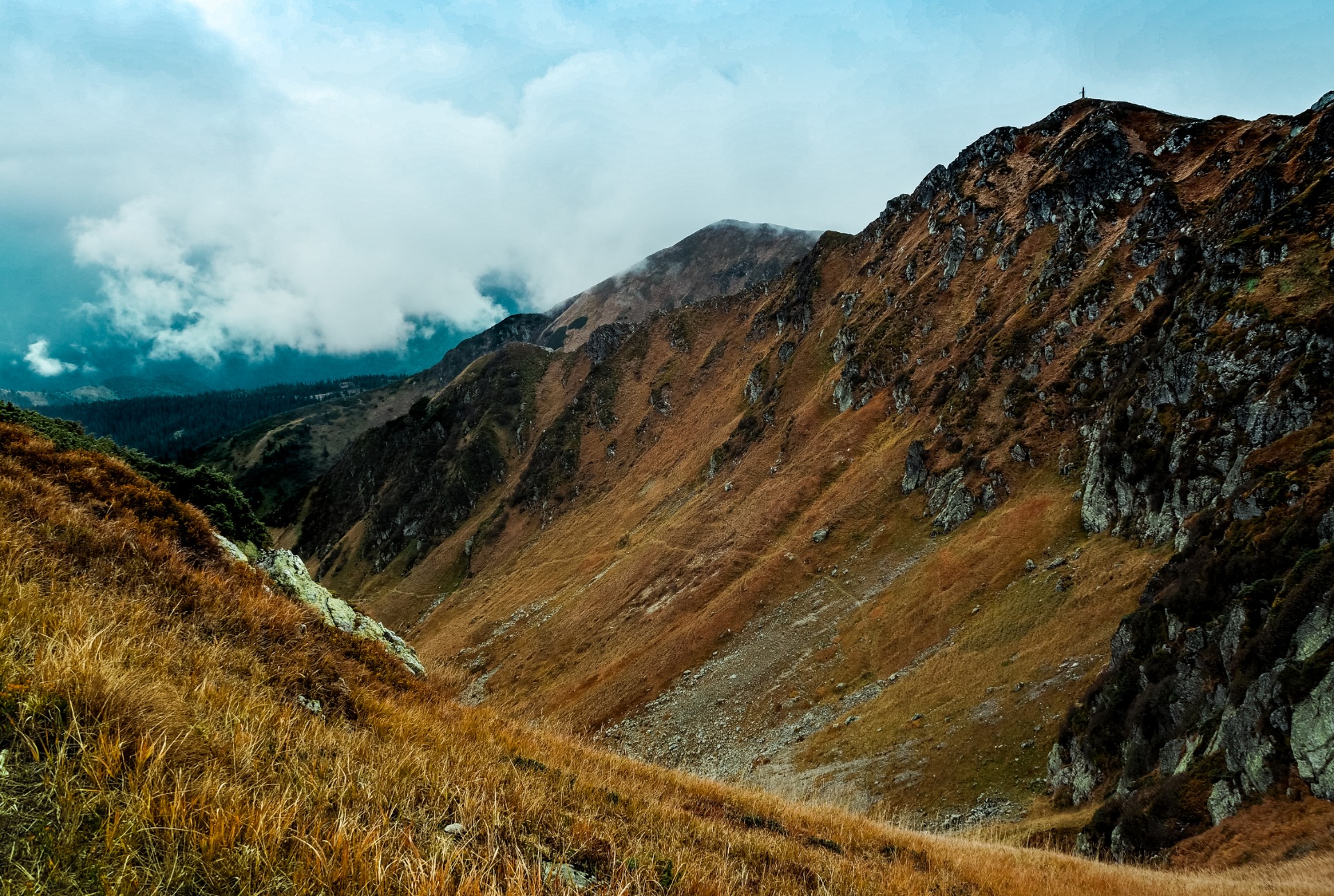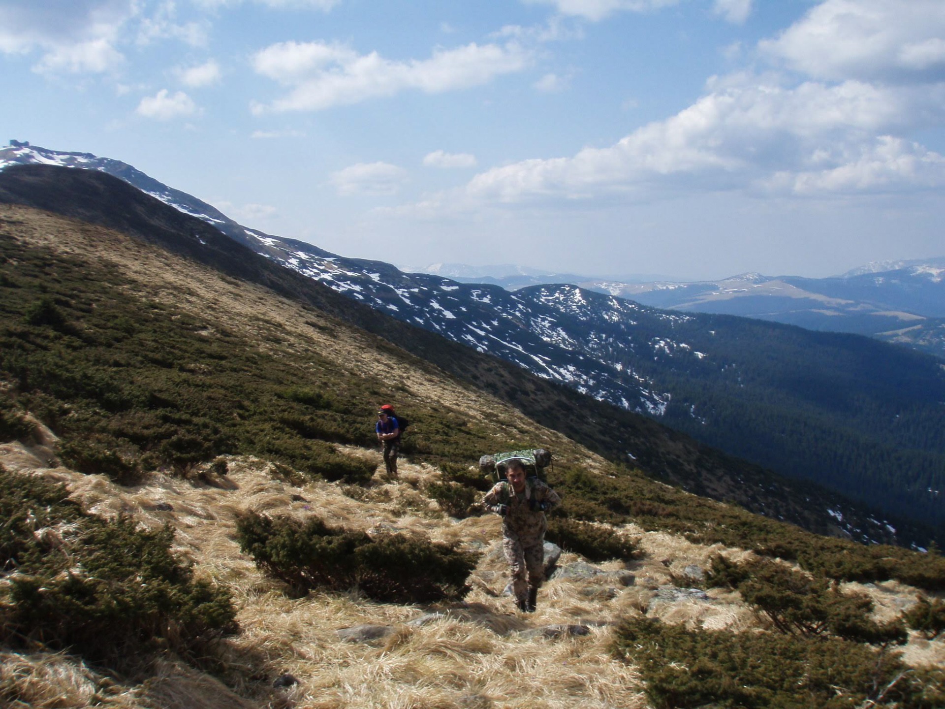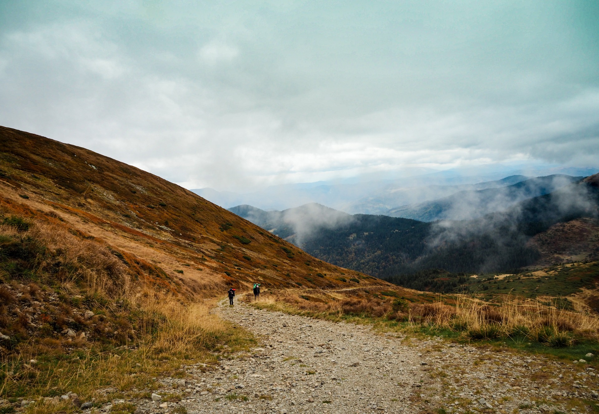 So, last October, with a fun company of my friends, I made a journey down the Marmarosh mountain range, which is part of the Ukrainian Carpathians. You could say about this hike, that it was a journey in the mountains and that would be enough, because you already know about my love for the mountains. But this hike had one feature - much of its route ran along the Ukrainian-Romanian border, so in order not to be detained for illegally crossing the border, we had to get special temporary passes. To do this, we registered in advance on the website of the State Border Guard Service of Ukraine, and before the hike, we arrived at the local branch of the Border Guard Service, where we were issued temporary residence permits at the border. Indeed, during the hike, many times we inadvertently crossed the state border of Ukraine, because there were no fences, only border posts, located 1 km from each other. It was a wonderful journey, mostly taking place in the fog, which added special mystery. And this trip made me remember a very difficult downhill trip, one of the hardest times of my life.