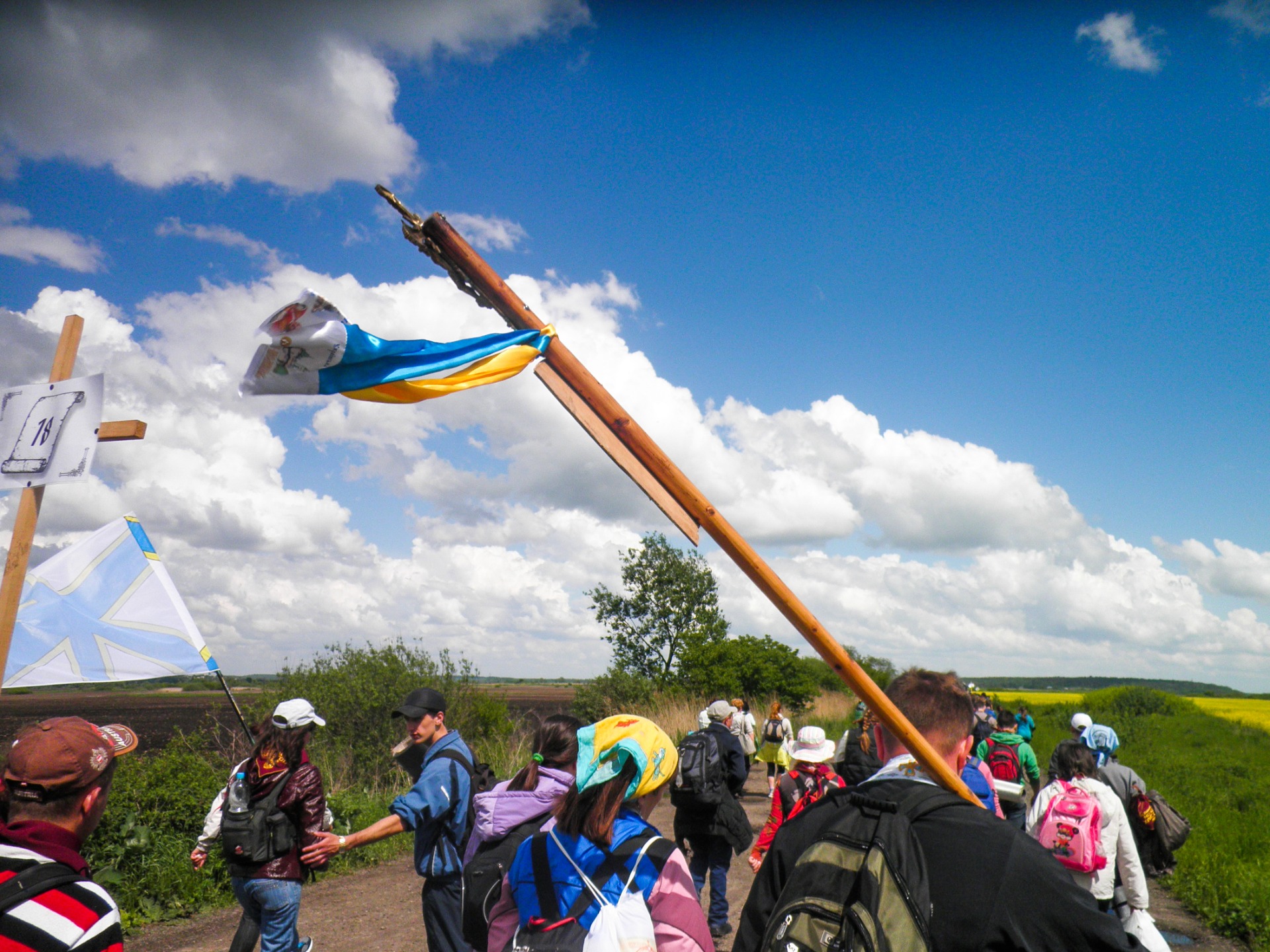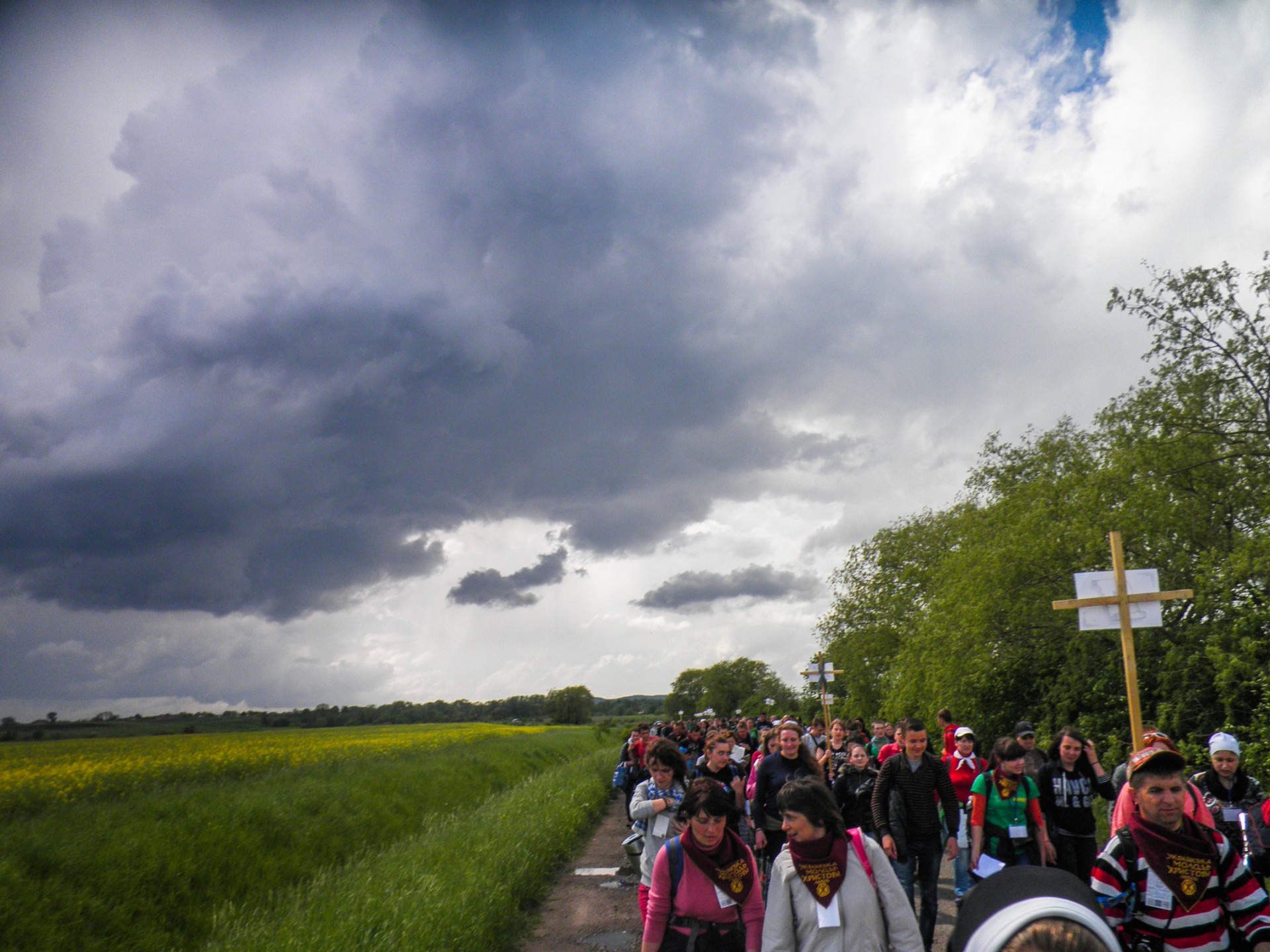 When we stopped to rest, I had time to look around and take a closer look at the people who came with us. There were several priests and monks, which is not surprising because they were to accompany the pilgrims. Generally, pilgrimage was youthful, so most of our companions were the same age as my wife and I. It was interesting to study the reasons why people decided to walk 50 km on foot to get to the monastery. It was also possible to get there by bus, as many people we met later did. Such people thought that time spent praying in a holy place was more important than walking time. However, participants in our hike generally thought that they will must go trough difficulty before asking anything from God. But I just went on this pilgrimage because I love hiking and this part of our journey was the most important for me. This is where I got a new experience that I'm sharing with you right now.