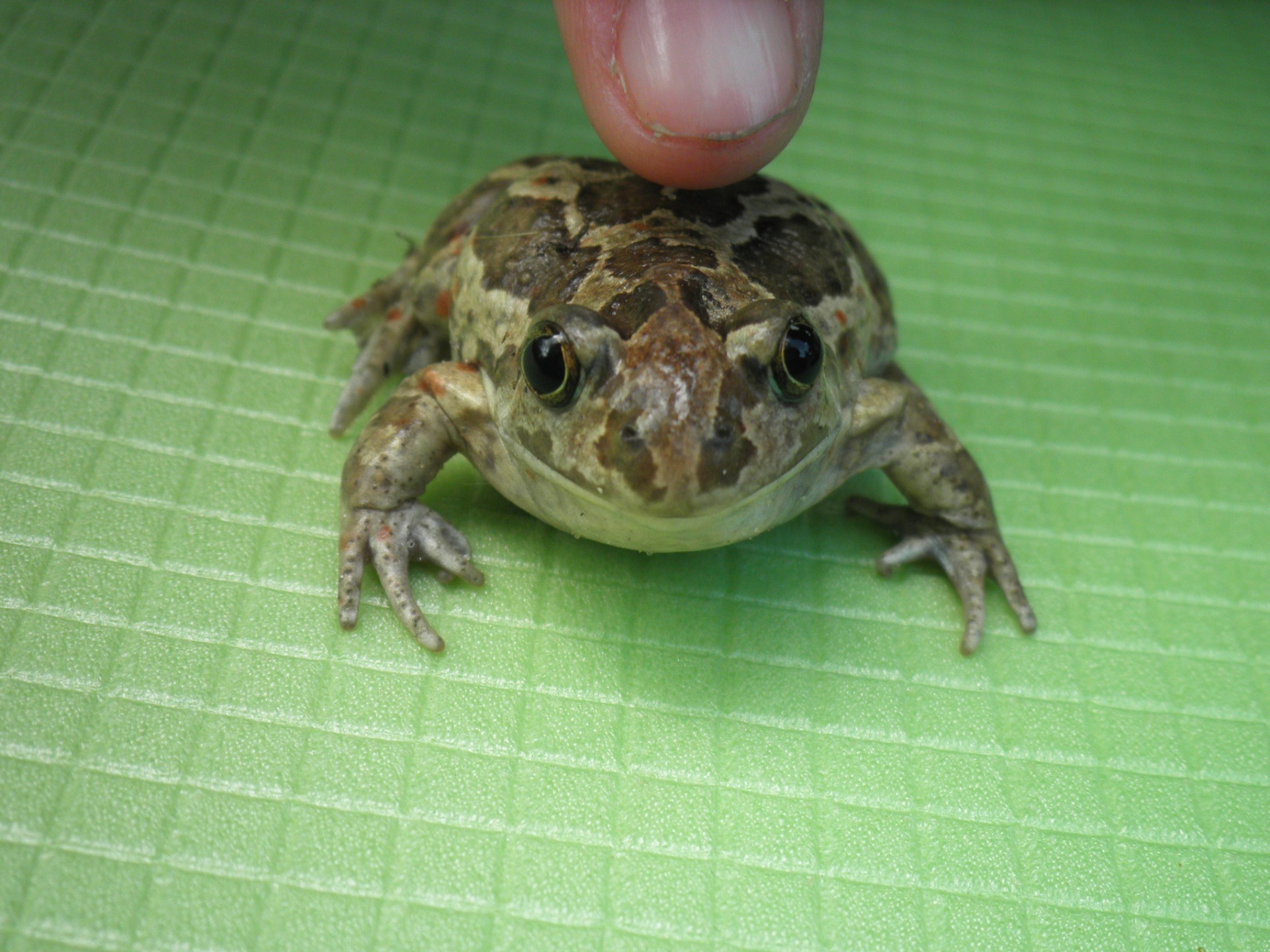 I should point out that if it were dry and hot, we would not have found this frog so far from the water. However, before were a few days of heavy rainfall, so was enough humidity. These showers were so powerful that real shallow lakes were formed on the meadows along the road, and I think many frogs, similar to our find, lived there.