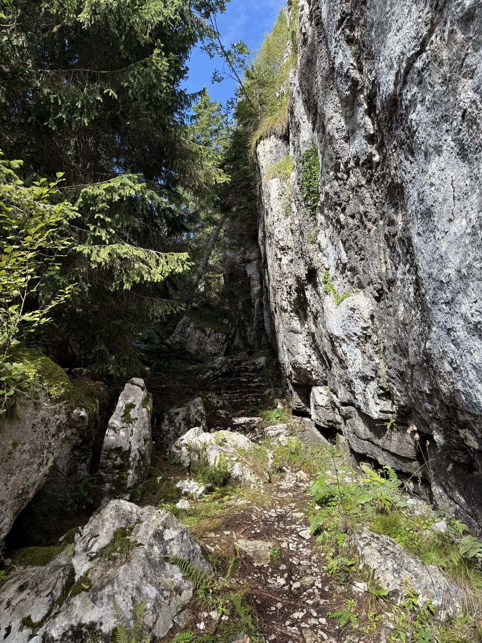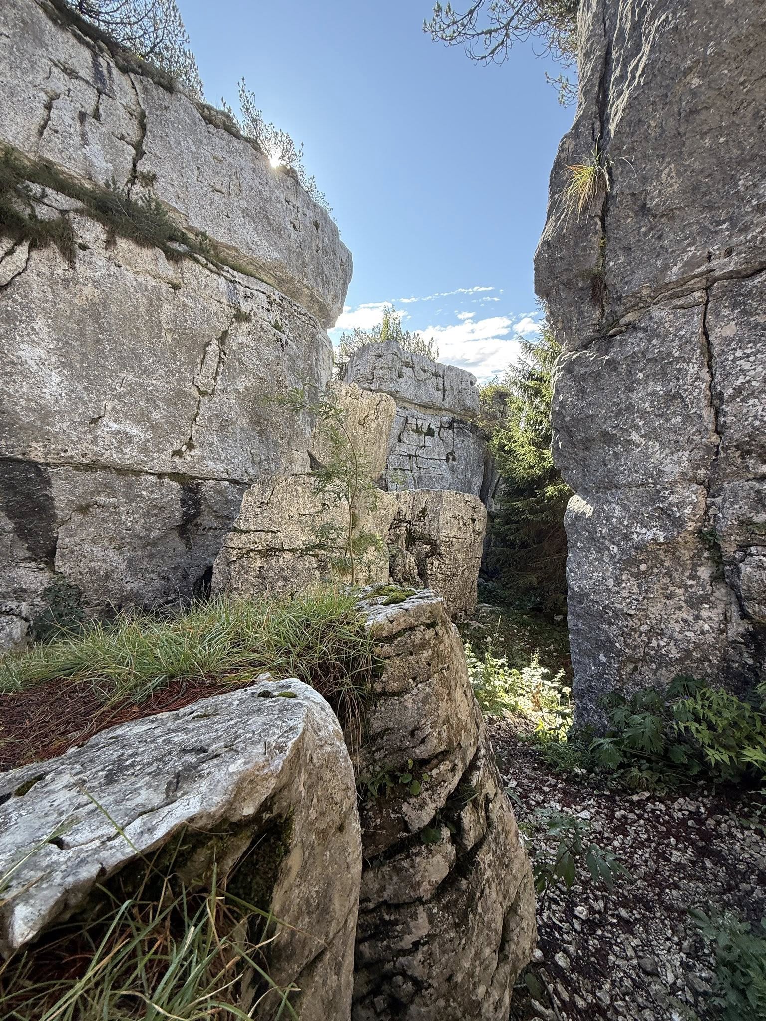 Ultimately, this place is nothing more than a maze of crevasses, as you can see from the photos of the trails that cross these very narrow passages. Let's just say this is the result of nature's work, given that these mountains are karst, so they have a very friable type of rock. But then, as I was saying, during the Great War, they were adapted and transformed into trenches.