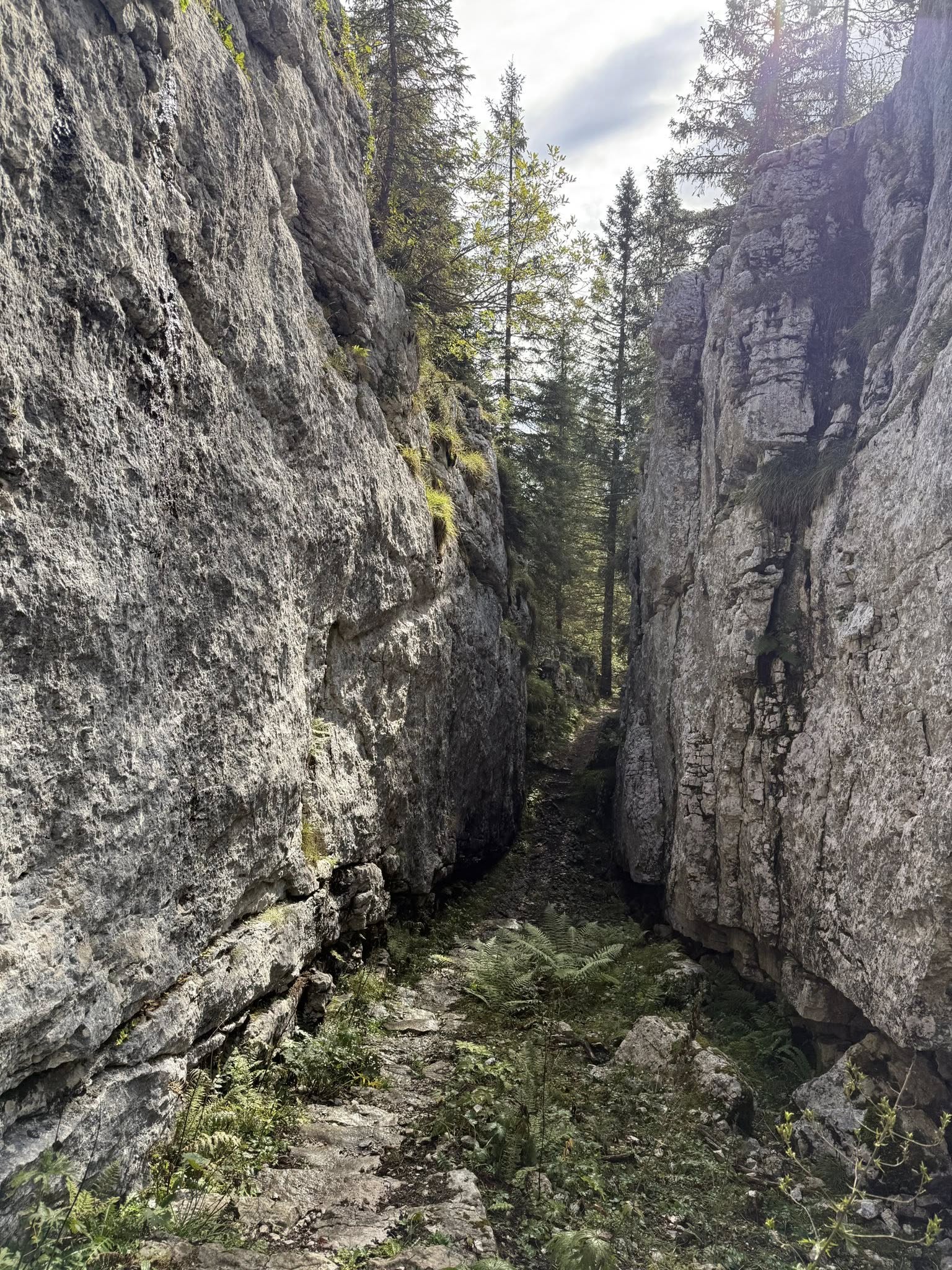 I started from the Campomuletto refuge, located not far from the town of Gallio, and reached this place by car. Let's just say that some of the sections here are very narrow, and sometimes you have to take off your backpack to get through. The route is approximately 4 km long, and can be completed in about two hours of fairly slow walking.