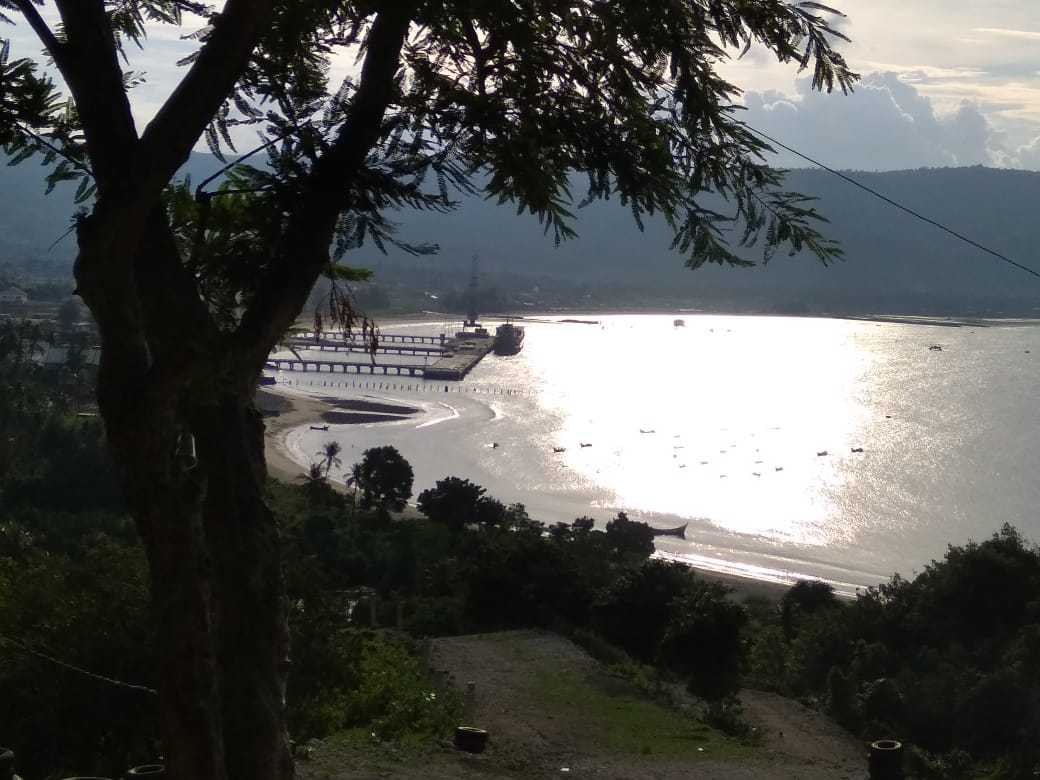 The pier that protrudes into the sea makes my view more complete with all the ongoing ship loading and unloading activities.