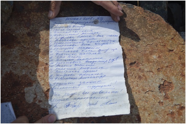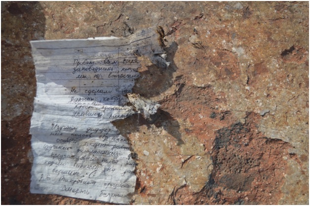 It costs 2 crosses. We find a bottle with notes. There are 3 of them, dated 2006 one and two 2008
