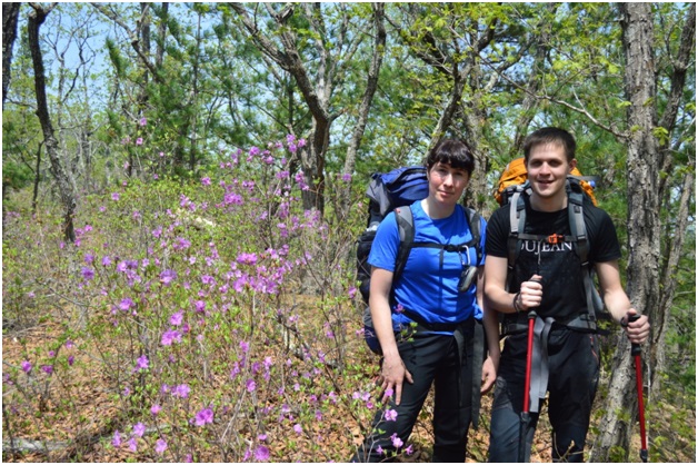 At 7 rise, at 8 departure from Sergeevka. Initially, there were 2 options for entering. The first from the village of Sokolchi up the Black River, to the confluence with the Bystrotekny key, and up along it to the top. The second option began at the foot of Mount Perevalnaya, then the movement was carried out along the ridges. It turned out that they went according to the second option. They threw backpacks, left Nastyushka, drove off the car in Chernoruchye themselves and returned to the abandonment (about 8 km). We had lunch and moved along the ridge, the forest is clean, oak and cedar grow mainly, rosemary blooms, very beautiful.