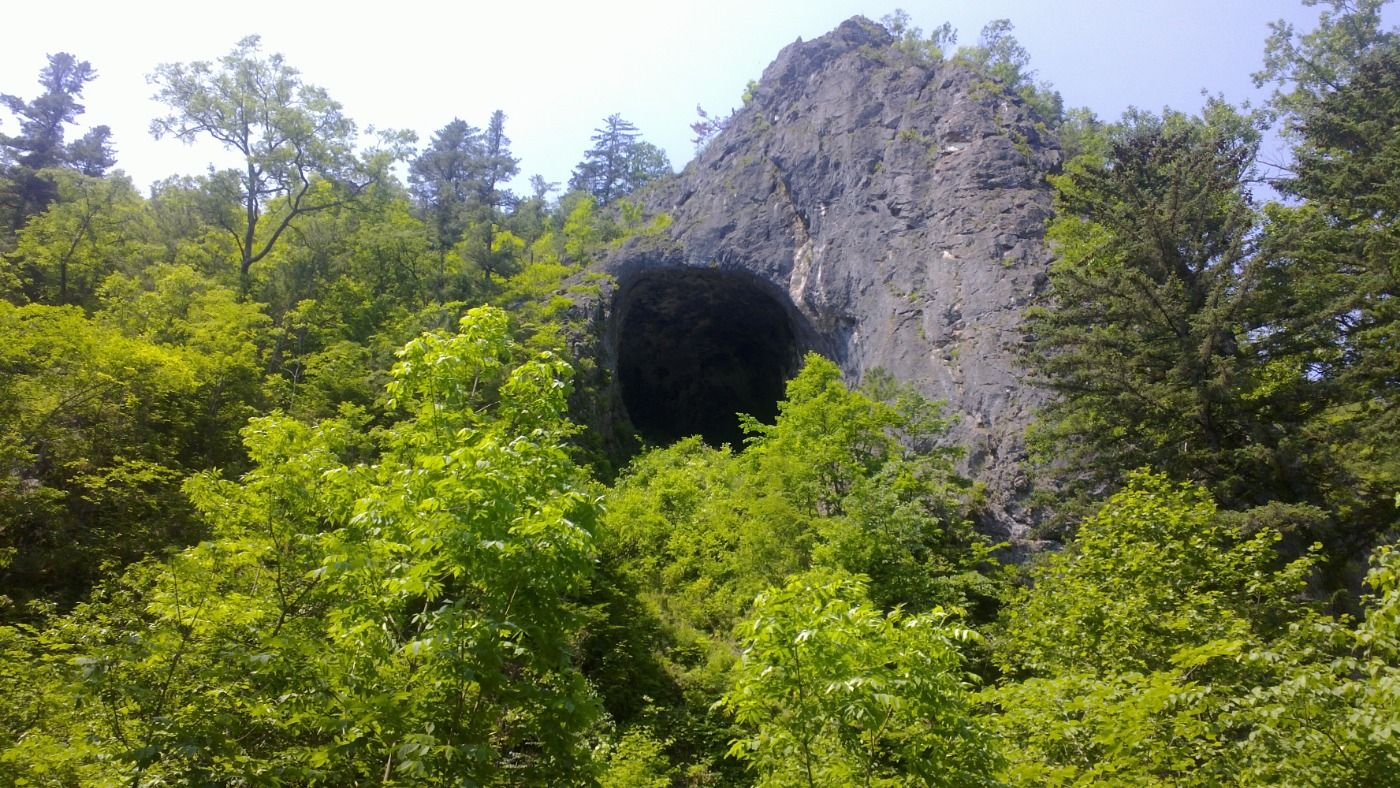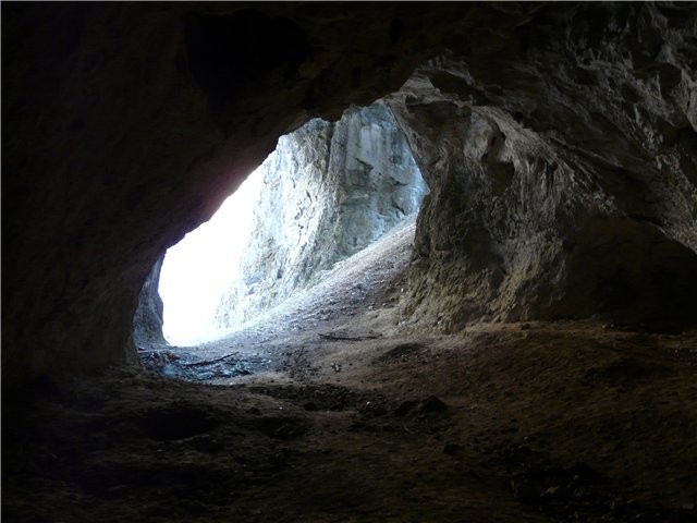 From the road to the parking lot, Gena and I reached 1.5 hours. I do not have time to grab a piece of fat, as Vitalya warns that it is dangerous and you need to brush your teeth! And it will be caries ... like that rock. I turn around and freeze! Indeed, a huge, if not very huge, caries in the rock - in front of us is the Devil's Gate cave. At the given moment, it is rather well lit and stands out contrastingly on the slope.