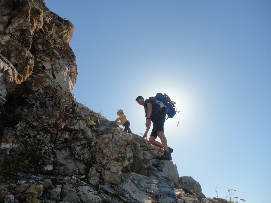 Only legs stick out and sway to the beat of walking. But little travelers not only travel over the ridge, but also learn the world with their own hands, feet and mouth.