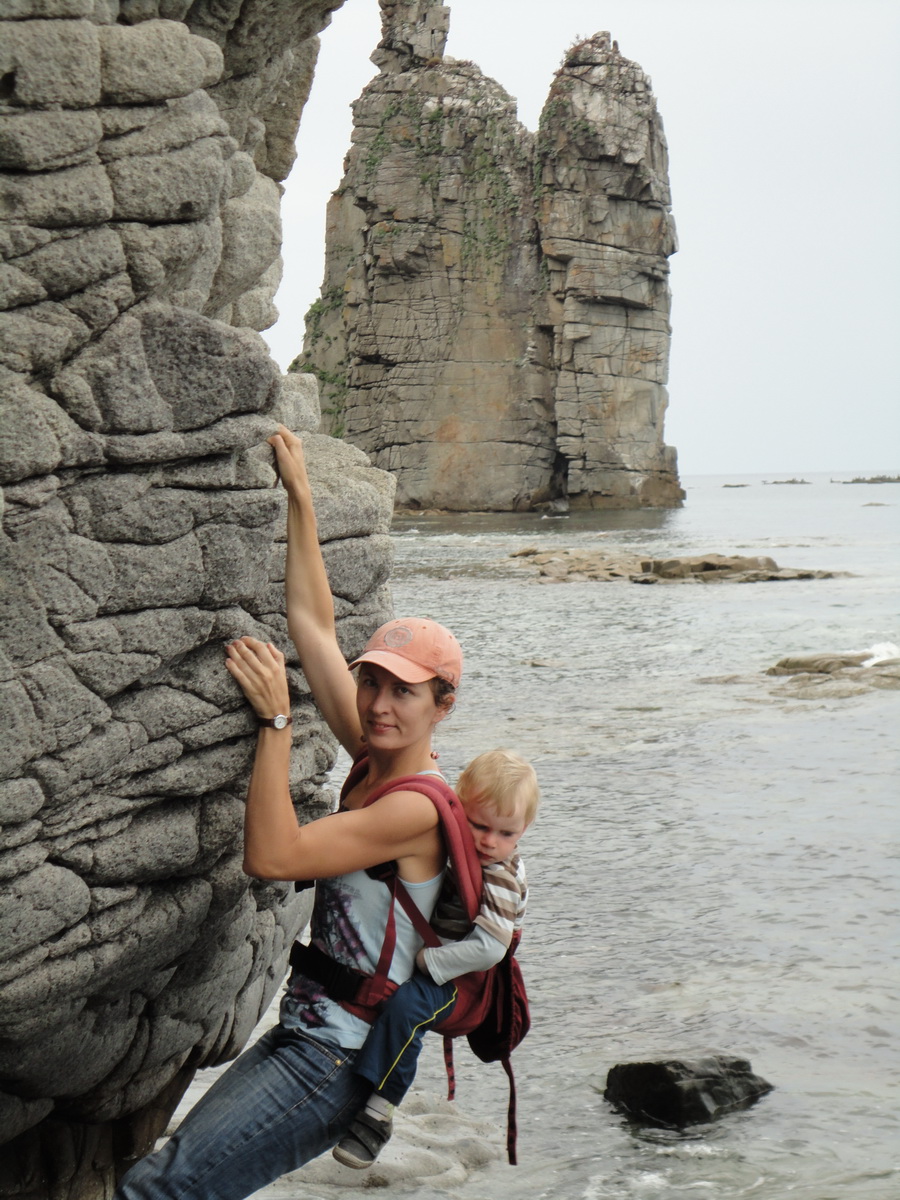 An interesting place to pull the troll;) Traveling along the coast, several times fell under the rain. Sometimes it was possible to sit out in a tent, then the kids watched cartoons, and adults slept. Sometimes the rain caught right on the way, then waited in caves, grottoes or under fallen trees.