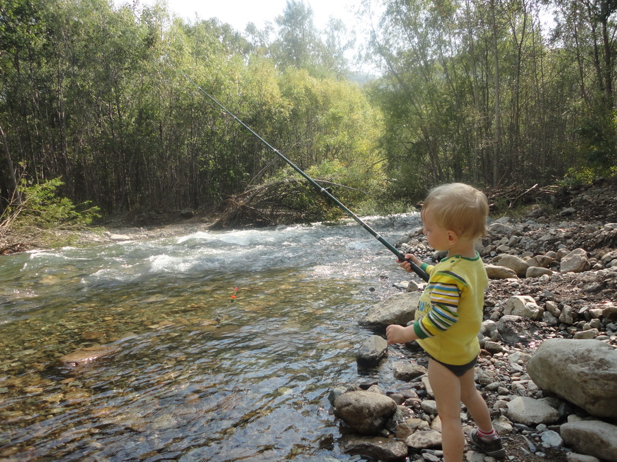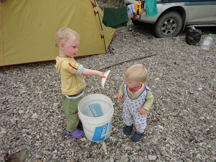 While dad and uncles fought for the car with the elements, the children received all the pleasures of life: eating, playing, fishing