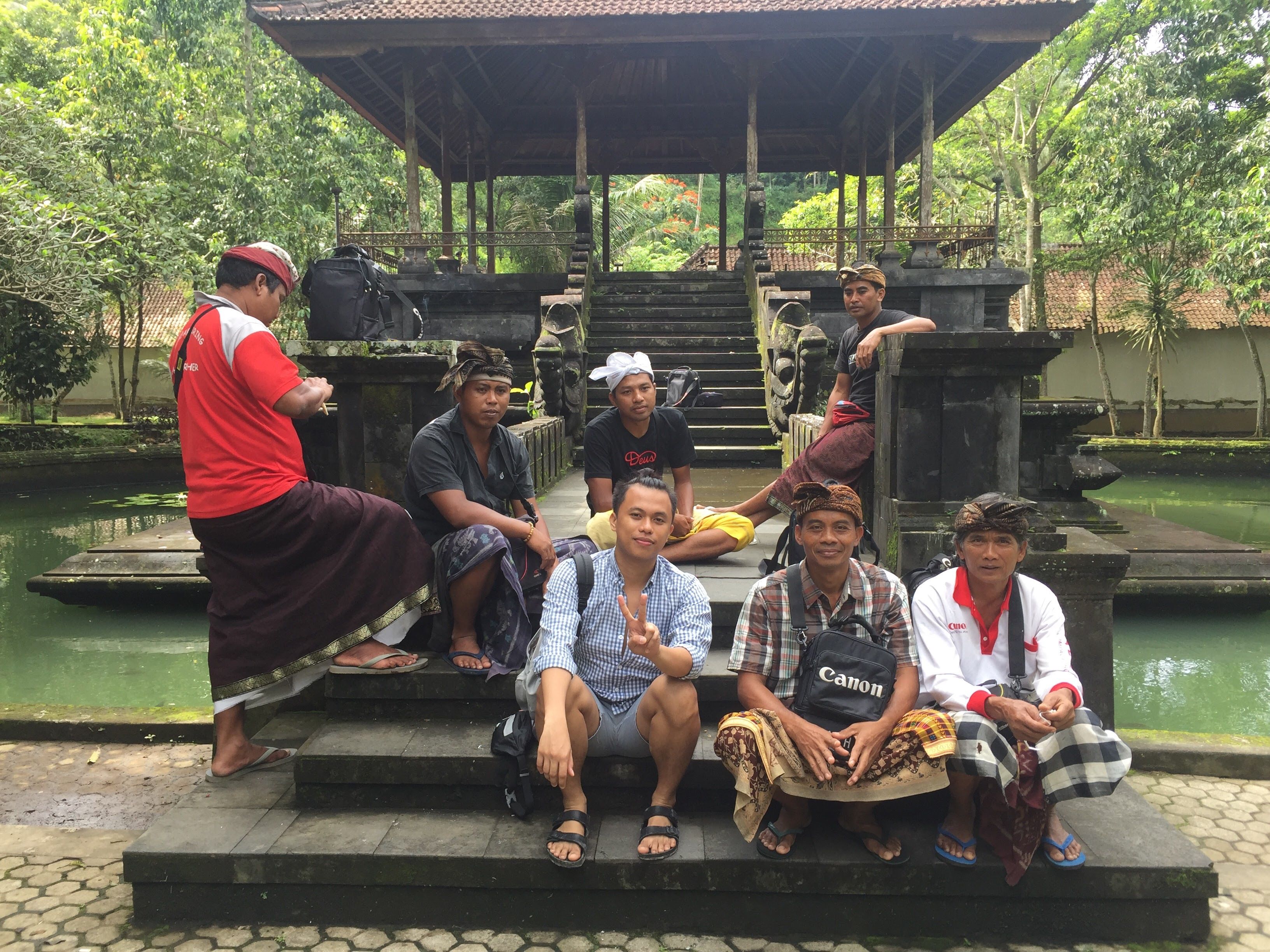 (Selfie with the Balinese locals, except with the mister local wearing a red shirt, maybe he was busy with his phone then at the Tirtha Empul Temple, Ubud, Bali, Indonesia)