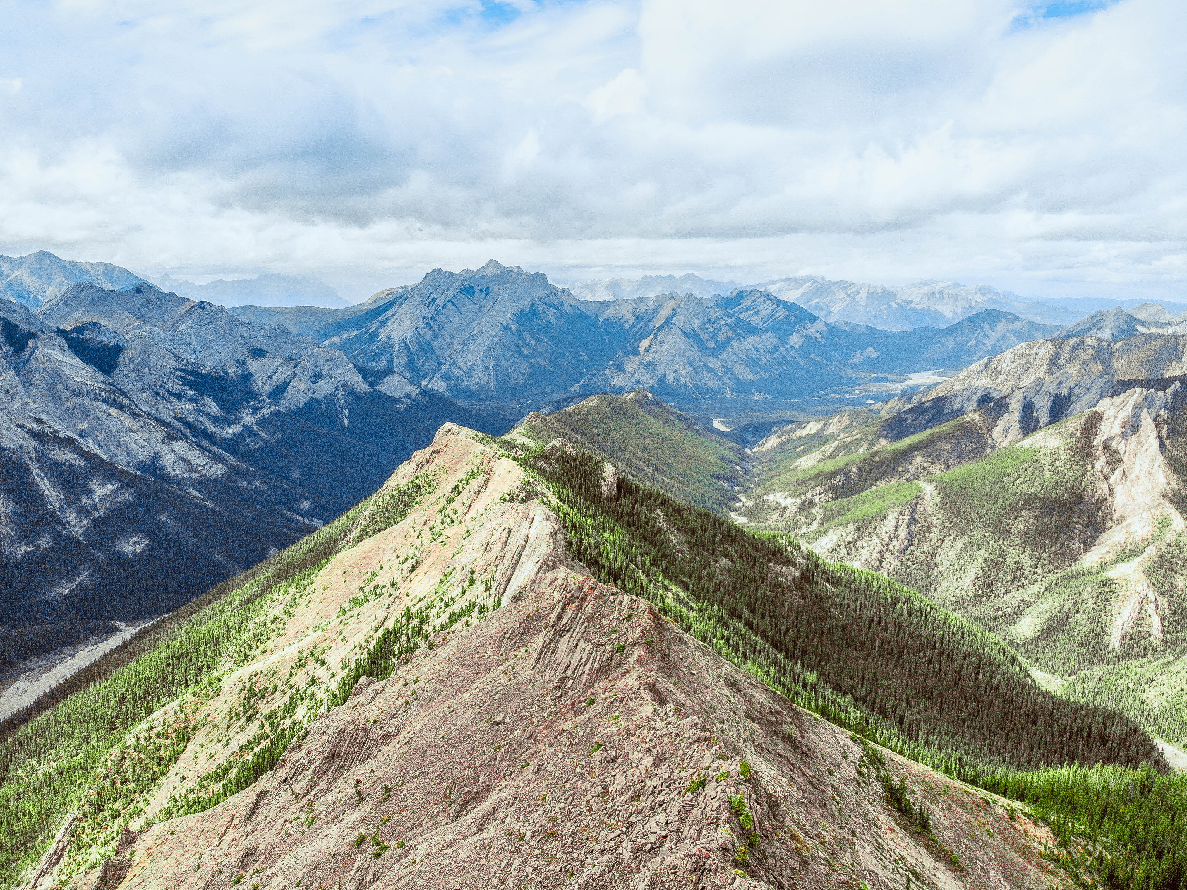 Wasootch Ridge is your typical Out & Back hike which most of the hikes in the Kananaskis area are (Just means the way you climbed the mountain is the same way coming down). If you're up for the challenge the elevations gain to the summit from the parking lot is roughly 1400 meters which for even a regular hiker is a fair bit. If you're just not feeling it or looking to go on a stunning hike without destroying your knees or having to scramble too much then I'd say stop at the Cairn which is about 900 meters elevation and very similar views.