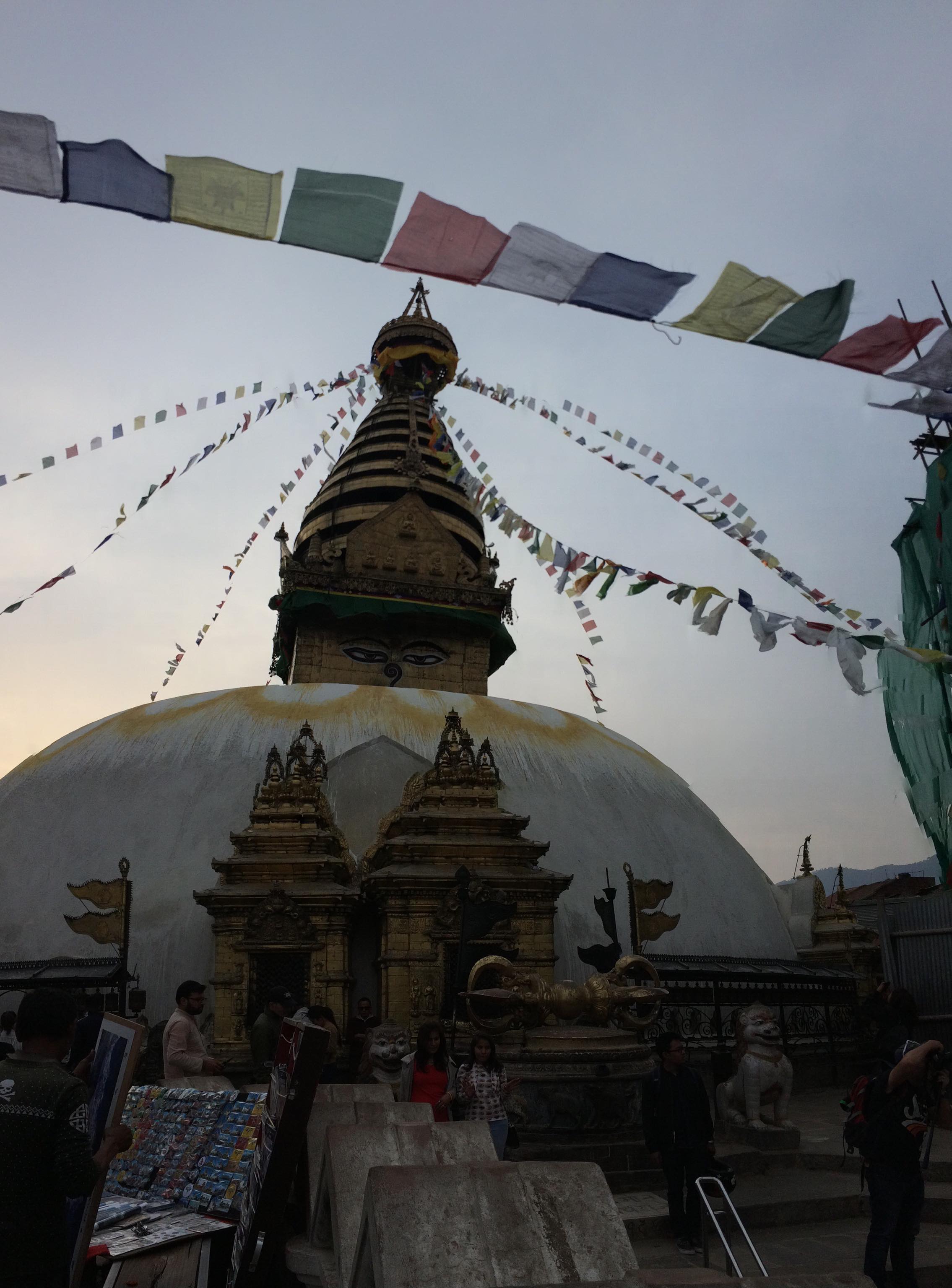 this a buddhist temple located at the top of a hill in kathmandu nepal. its best know for it architecture and the view from on top of the temple, the whole city can be viewed from on top of the temple. many monks and pupils resides there. many buddhist ceremonies,festivals or events are held there.its also a world heritage site. monkeys are found there in great numbers. as it is located on top of a hill,the climb through the stairs is not everyone's cup of tea. it attracts a lot of tourists from around the globe.