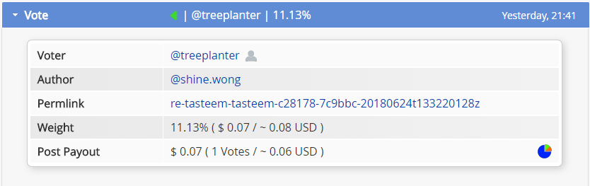 I sent .25 for 4 of my posts a few days before you announced the change. And because of the delay in voting, when it finally got upvoted, I got a smaller upvote than usual. I planted .13 trees instead of the usual .25. This is very shady to give a smaller upvote on people who made a contractual agreement with your service by agreeing to get a 2X upvote with a maximum payment of .25. I sent the .25 while still under the old contractual agreement with your service. This is very shady. You should have either upvoted the full amount you originally had promised before changing. Or you should have refunded .15 of my SBD for each post if you were only going to upvote .1 worth. One of those posts is already at 7 days. So unless you can fix the others to the upvote I payed for, will you refund .15 SBD for each the posts you failed to fulfill your end of the agreement? I lost money using the service. Can we find some way to remedy this wrong?