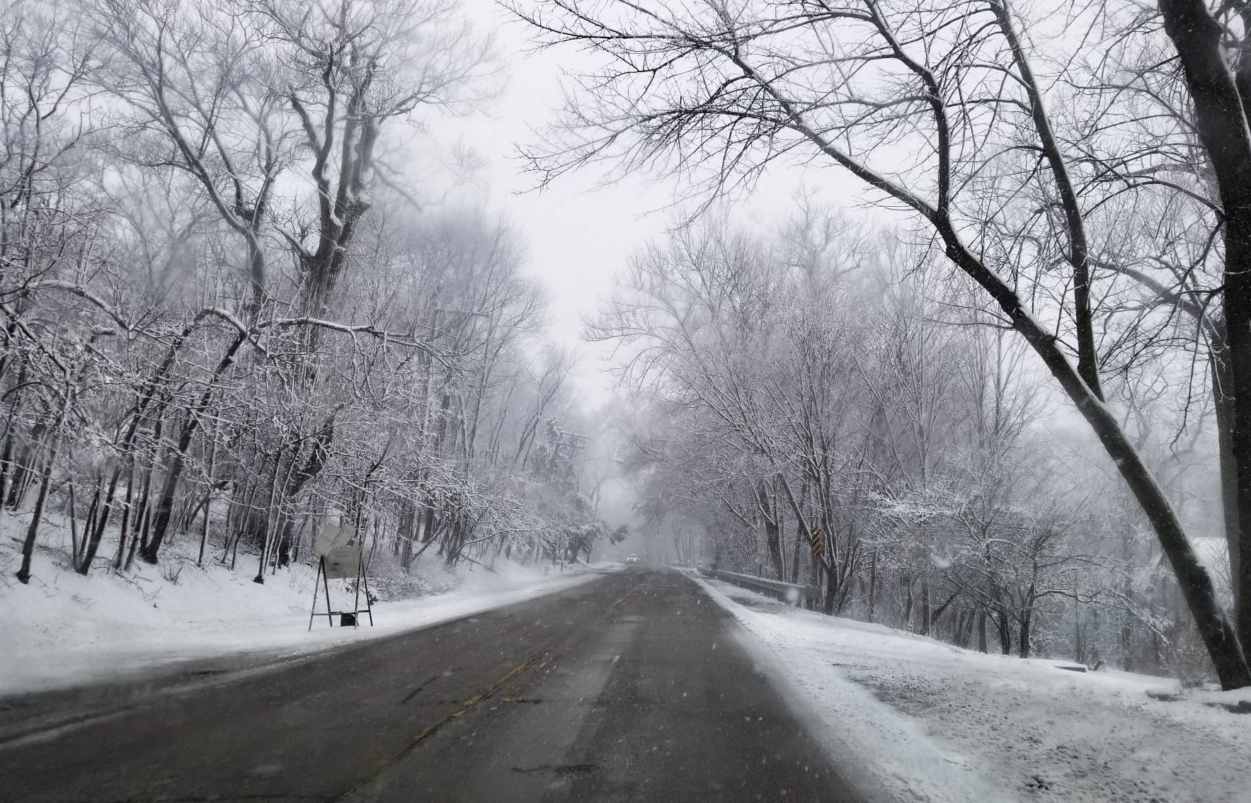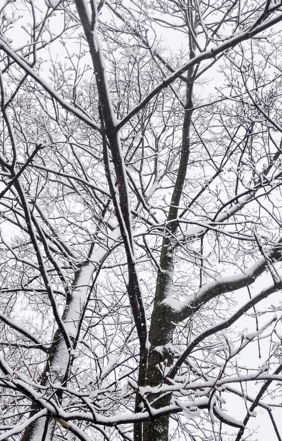 Even the sky turns white when it snows here. This masks out the tree branches even more.
