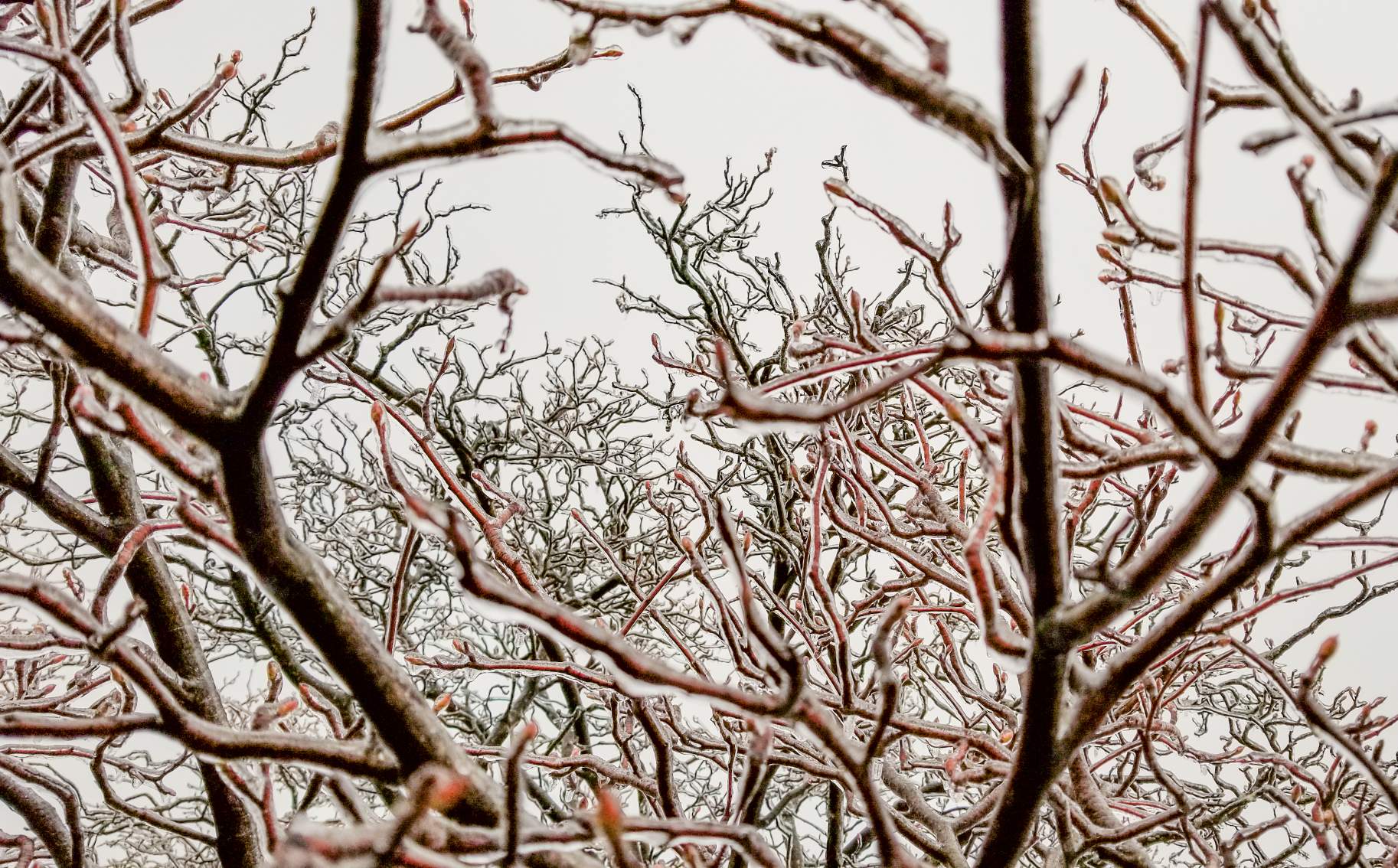 This smaller hedge starts to look like a bunch of veins once it is coated in ice.