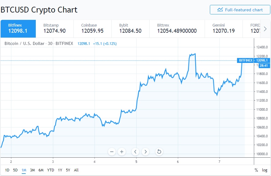 Today, as the Dow and S&P 500 each shed over 1%, Bitcoin climbed back above $12,000, an appreciation of over 7% from the day’s low.
