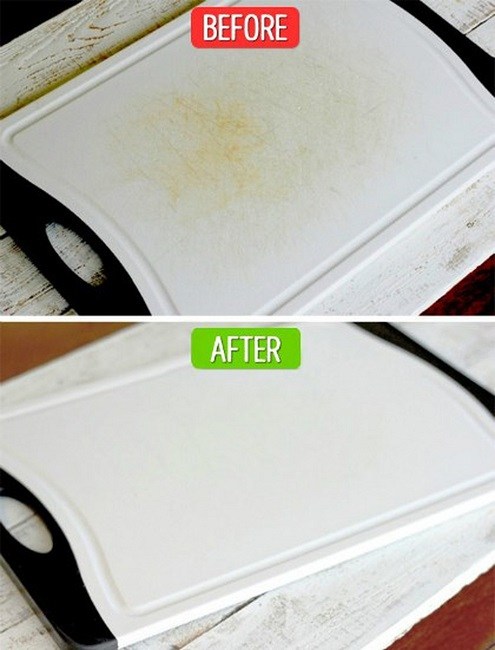 With time, you may find your chopping boards dirty and with ugly knife marks. The grooves invite debris and dirt making the chopping board look dirty. All you have to do is clean the board with a sponge soaked in a lemon juice and salt mixture.
