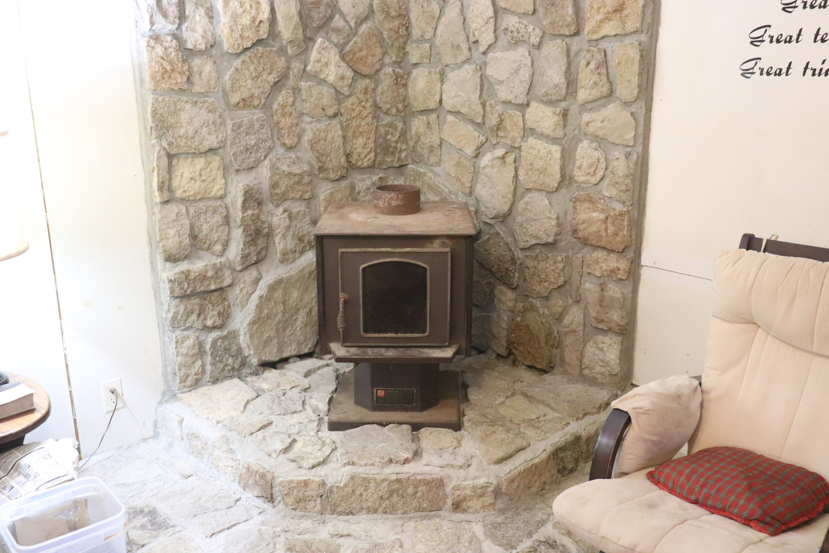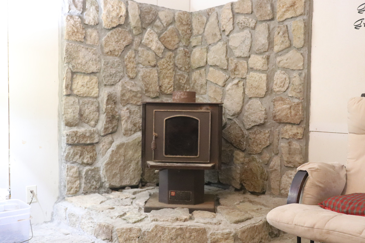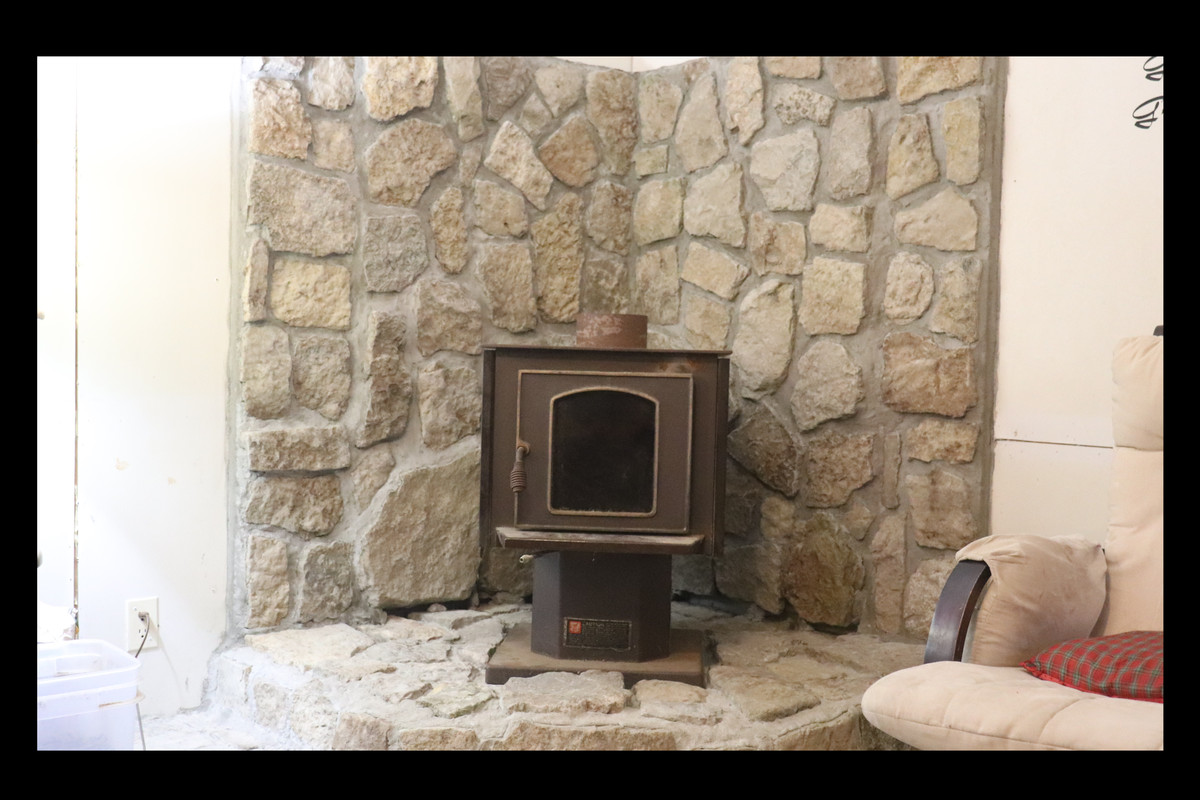Since we finished the rock and mortar, it was time to focus on the actual wood stove. It was gifted to us by some friends, because a metal plate inside it had become unattached, and they received one from some friends to replace it. Since they had a "new" one to use, they gifted us their old one, knowing that one day we would be able to use it. Sure enough, they were right. Yesterday, a workmate of mine helped me weld it back together and get it moved into place. Soon, I'll have to install that stove pipe and we'll be heating this place up. Enjoy the photos!