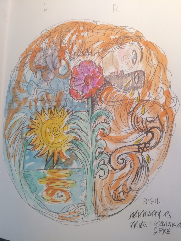 The answer... evolved and did not stay within the diagram.... is that having figured out what the hell is going on in the world, by listening to all of Mark Passio's podcasts... since then, I discovered Sigils but, still was not able to get anyone interested in acquiring any of my work ... so I was sort of in a slump - the auragraph basically says, I just have to keep doing it. I have to put myself out there - as in the flower.