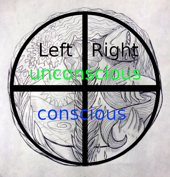 I started in the Left, Subconscious side, with my squiggle... and came around counter clockwise, quadrant by quadrant.