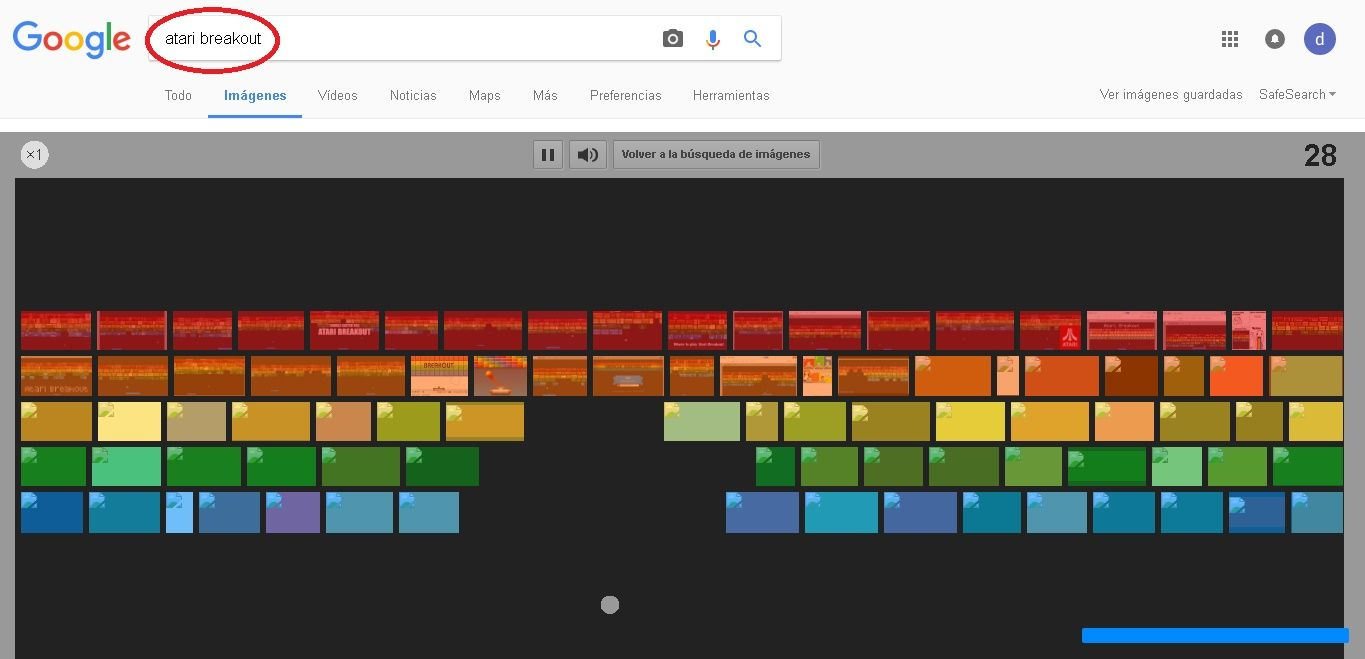 To achieve this trick we must place in the search engine "Atari Breakout" then we enter images and ready we can play the game.