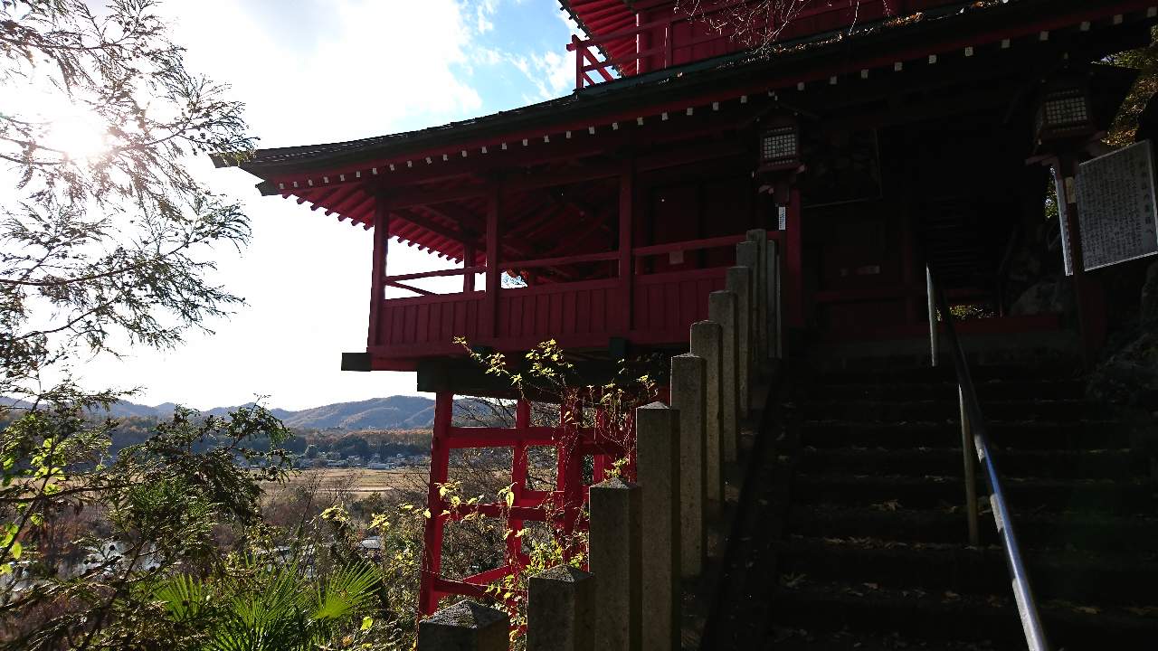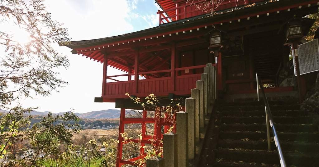 A red temple in the sky and a Japanese old royal shrine