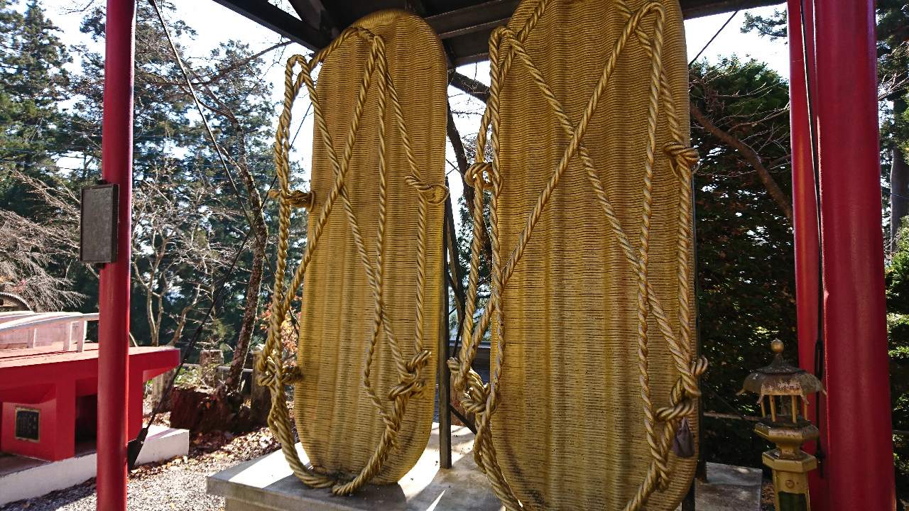 The monks visited the temple wearing their old shoes, "waraji".