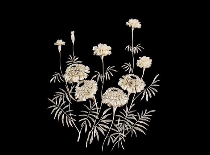 Hurong has developed and improved the technology for creating her creations over the years. The most time-consuming process is collecting material for the job, says Lee. Bones of various configurations and sizes are disinfected by Lee, soaked in a special marinade, and then chemically treated. After that, the artist begins work on creating an original drawing on the canvas. It attaches the bones to the material with ordinary glue and allows it to dry.