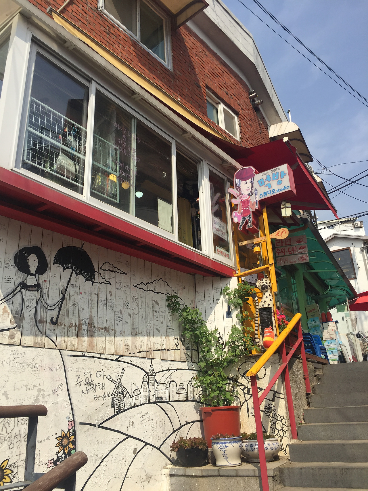 공사중인 이화장을 한바퀴 돌아보고, 근처 집들과 골목은 좀더 구경했다...이화마을 카페에서 커피한잔하고, 책도 읽고 싶었는데...5시가 마음에 걸려 그냥 내려왔다..다음에 아이데리고 같이 와야지..하며,, 꽁냥꽁냥이라는 카페(사진에 알록달록한)는 고양이를 그리는 우드를 물감과 함께 공짜로 제공한다..음료개수만큼...고양이에 폭빠진 우리 딸이랑 같이와야지...했고..