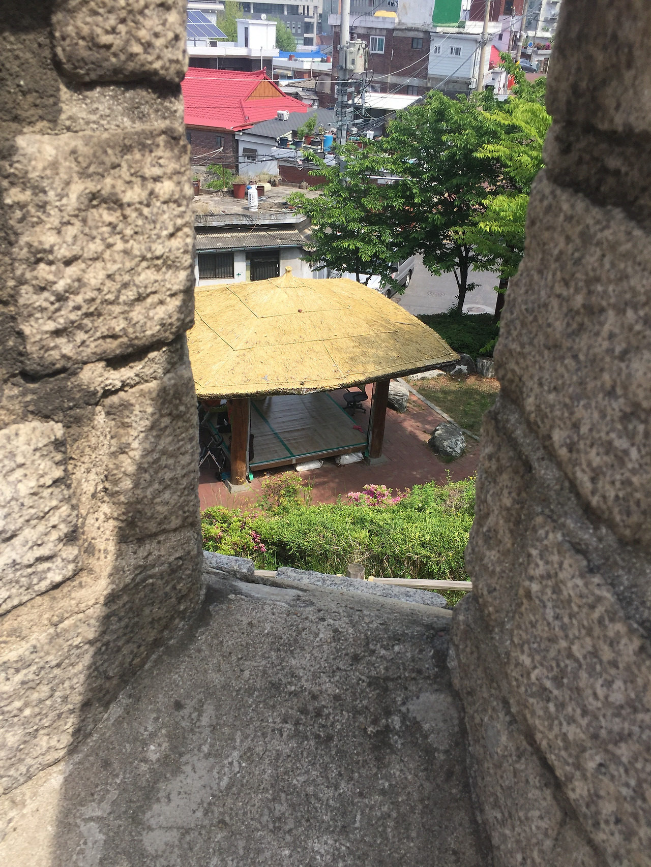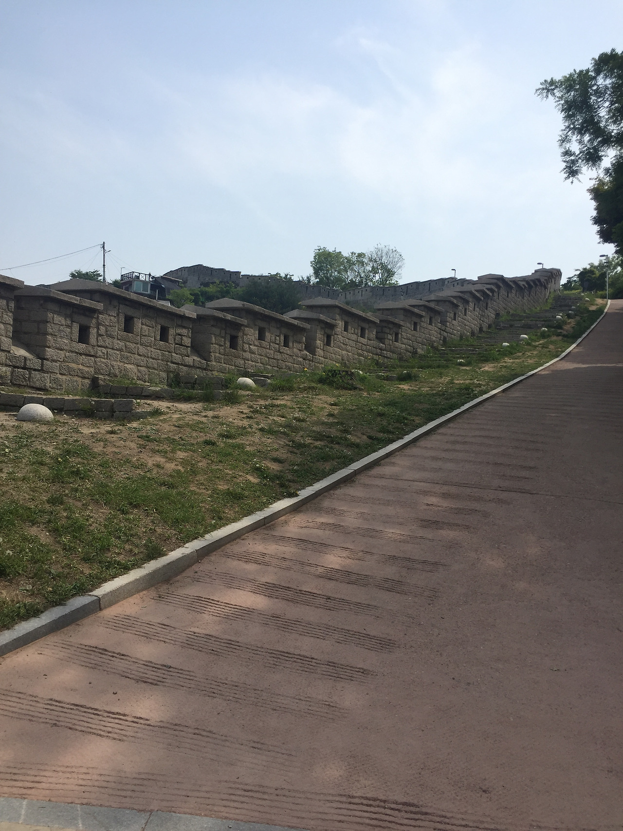 성곽을 따라 걷는다... 날은 좋고...아무도 없어 무섭고..ㅋㅋ 아주머니 한명이라도 만나면 반갑고 안심되고..(겁쟁이,,,대낮에 무서워서, 셀카 찍는다..혹시 뭔일나면, 나 여기 었었다고 남편이 알수 있게..ㅋㅋ주접이다.) 낙산공원에 별건 없다. 교복입은 학생들이 사생대회 왔는지..까르르..왁자지껄...귀엽다..낙산정에서 잠깐 쉬고....어디로 내려가야 하니....지도보는데!!! 핫. 여기서 부터 이화마을이야?