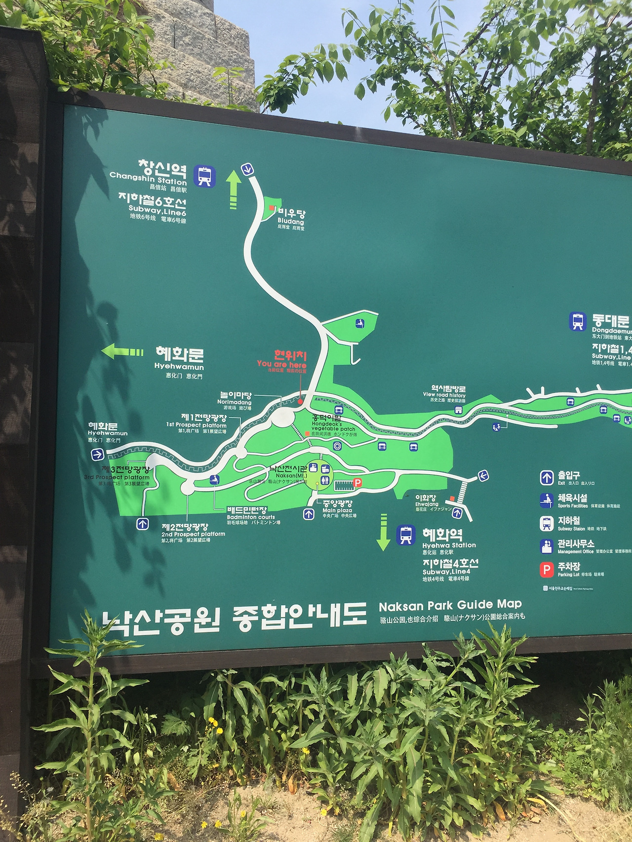 혜화역 2번출구 아르코 미술관 뒤로 가서, 광명레지던스 왼쪽 골목으로 올라가면, 바로 제1.2.3 전망대로 갈수 있는 낙산공원 입구가 나온다.