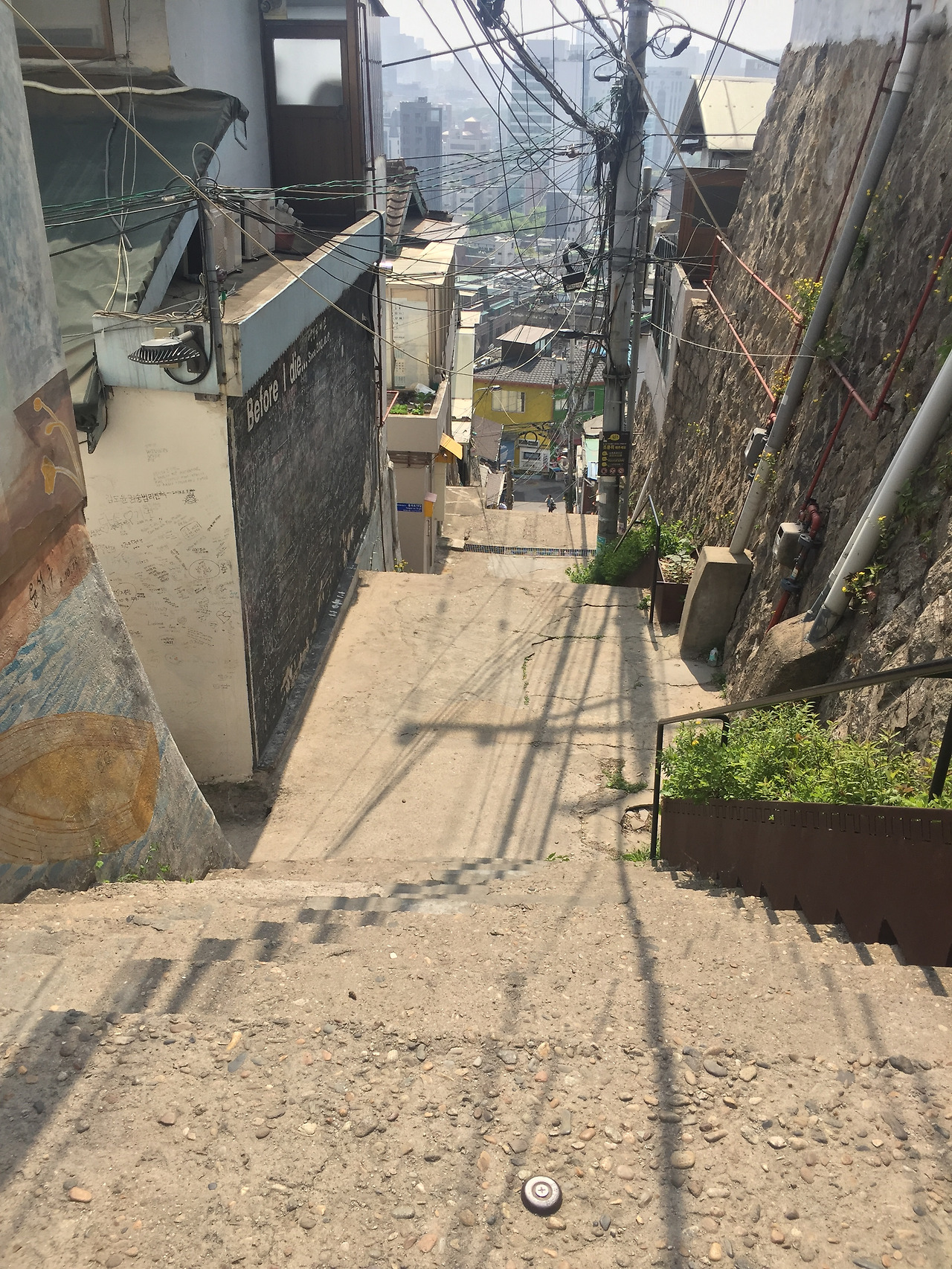 수년전 잡지에서 '벽화마을'로 소개되었던 이화마을을 기억한다..벽화마을 해봤자, 인천도 가봤지만 별것 없다..감동이 없다는...그래서 별 기대 안했고, 그 당시 핫플레이스라길래 사람많을까봐 안갔다..이번 이화마을도 갈라고 간것이 아니라, 낙산 공원 끝에서우연히 이정표와 지도를 보고 가게된 것이다....그런데, 이화마을..'득템'이다...지금와서 더 좋은 것이겠지...한산하고,,, 몇명의 중국인 관광객들이 사진을 찍고, 동네 아래 어귀에 교복입은 학생. 사람들이 조금 시끄러울뿐...조용하고, 아기자기...신기하고,...재미있는...아름답고, 정감가는 동네다...드라마에서 '저기 어디야? 서울에 저런곳이 있어? 하던 그곳...여기다..My favorite '도깨비'도 여기서 찍었단다..우리 공유씨가 여기 서 있었단 말이지..OMG 리모델링을 많이 하지 않아서, 너무 좋은...투박한듯 그대로..그리고, 사람이 살고 있는 그런 동네 여서 너무 좋은...텃밭, 평상...언제봤더라...그래서, 여수 외가댁에서나 보던 모습이 여기 그대로 있다. 이 높다란 시멘트 계단..너무 정겹다...이런 동네에 살았던것도 아닌데, 왜 뭉클하고 그러지..