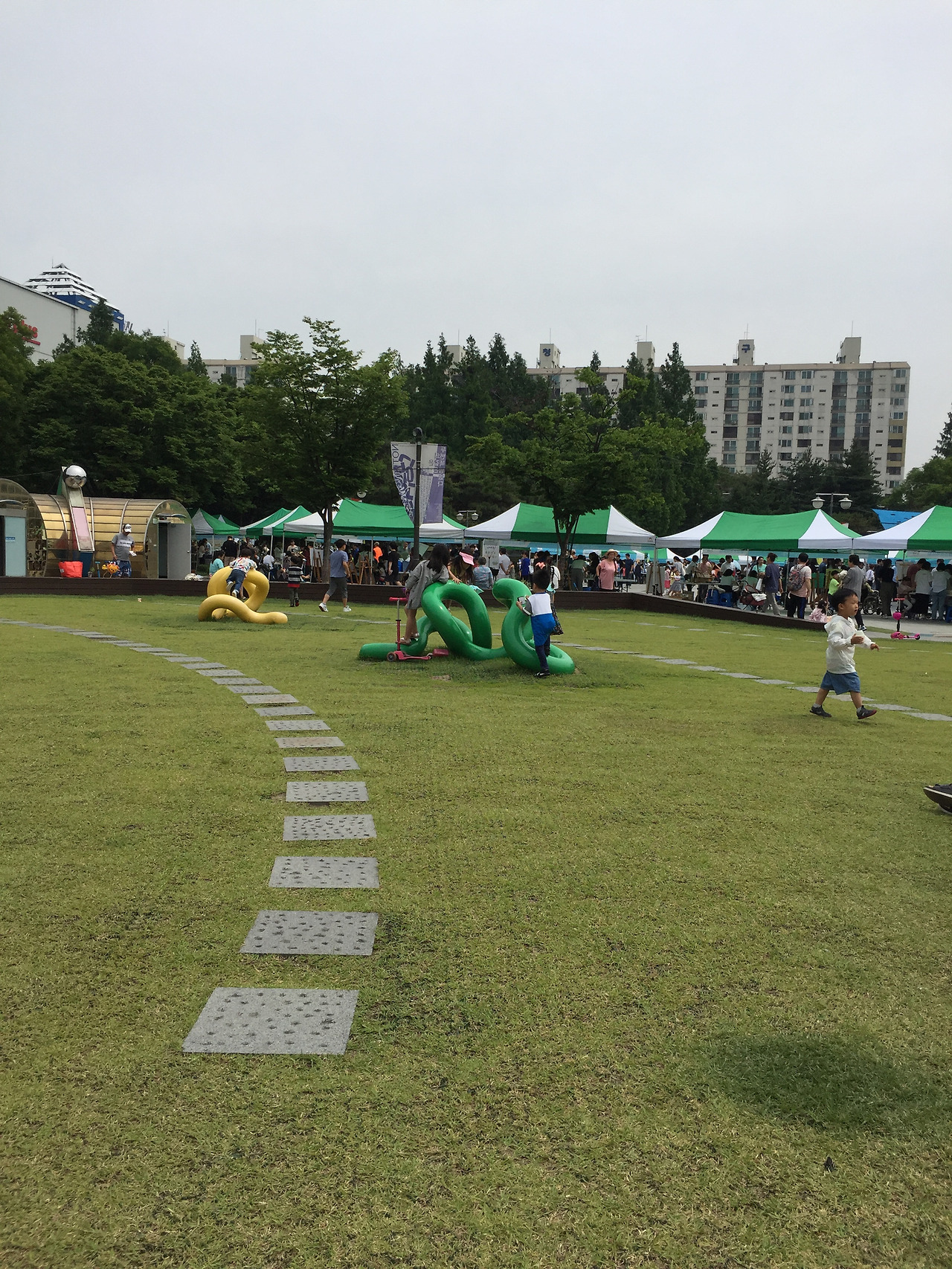7호선 중계역에서 5-7분 거리에 있다. 평일에 아이 데리고 가려고 지하철역까지 알아 두었는데, 다행히 주말에 남편이랑 차를 타고 가게 되었다. 지하 주차 공간이 넓직했고, 아파트촌 한가운데라, 홈플러스랑, 2001 아울렛이 바로 작은 길 건너에 있다. 먹을 것 &주차걱정은 안해도 된다. 주변환경이 어떤줄 몰라, 동네 서브웨이에서 샌드위치사고, 커피 내려갔는데, 굳이 그럴 필요 없었다. 인조 잔디 이지만, 벤치에 앉아서 샌드위치 먹을 환경으로는 괜찮았다.![]()