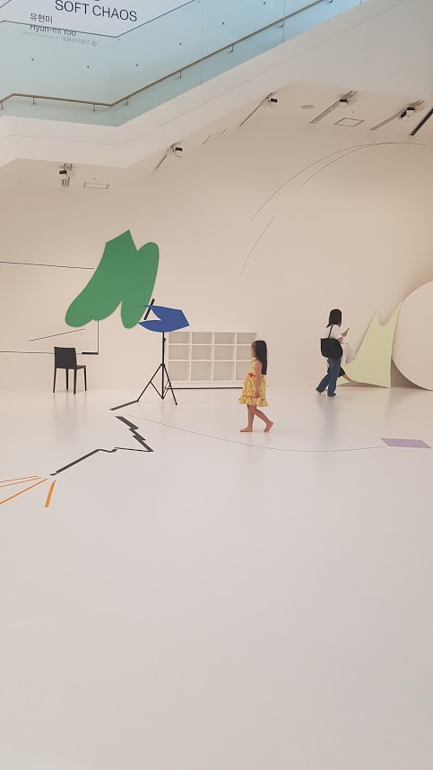 북서울 시립 미술관에 오게된 이유가 어린이 미술관이 있어서 였다. 소프트 카오스-공간 상상이라고, 복층 공간에 하얀색으로 꾸미고, 작품들이 전시되어 있는데, 꼭 스튜디오 같았다. 그래서 금요일 마이 리틀 티비에서 본 야노시호의 다리 길어 보이는 동작도 따라해 본다...ㅋㅋ 넓은 공간에 듬성듬성 작품들이 있고, 거울등이 전시되어 아이의 상상을 자극한다. 워크북이 비치되어 있는데, 거기에 필름지가 있어서, 들고 보고 액자틀 속의 작품을 보는 듯 하다. 엄마들이 워크북인지 잘 몰라서, 지나치는것 같은데, 뒤에 스티커도 있고, 하나 챙겨오면 유용하다^^