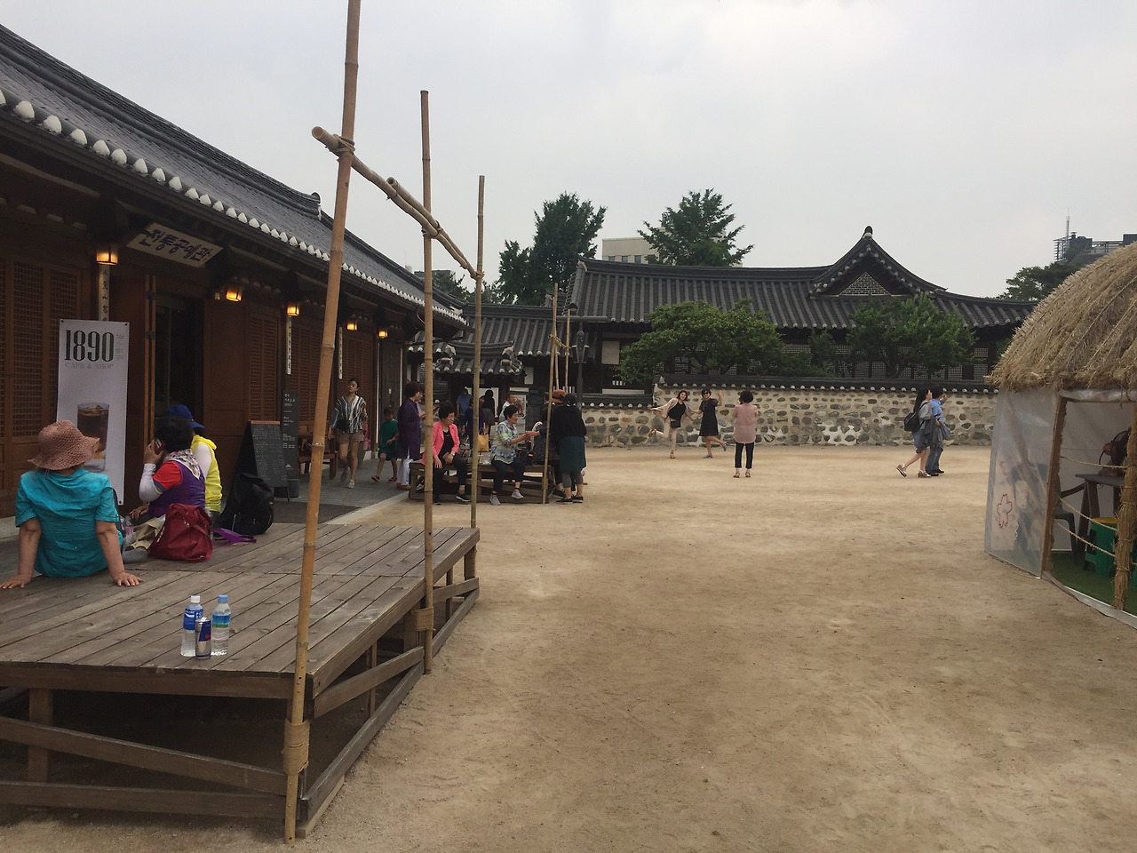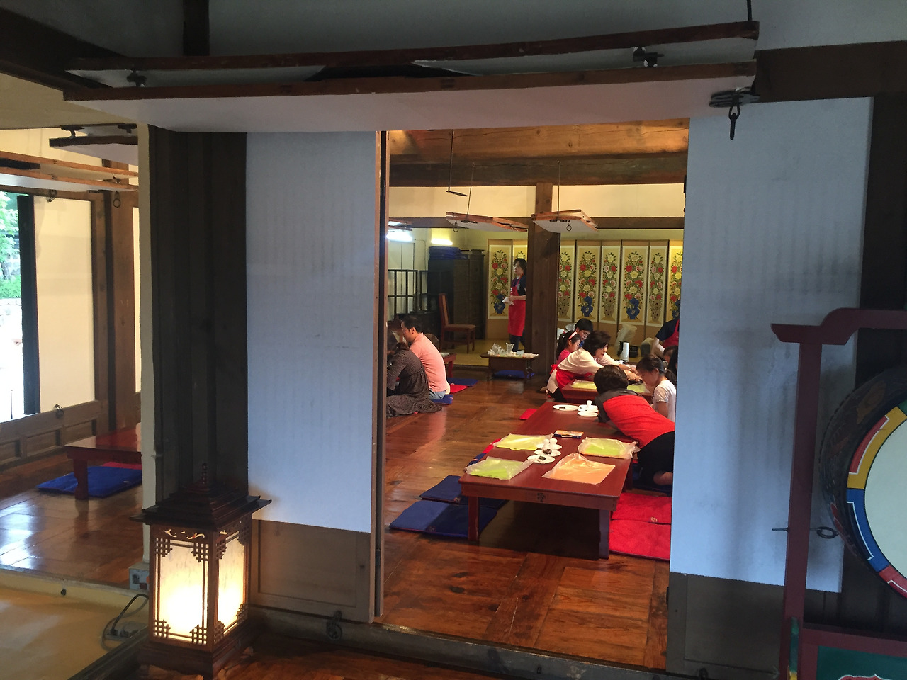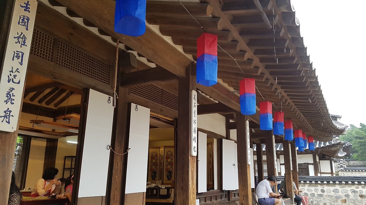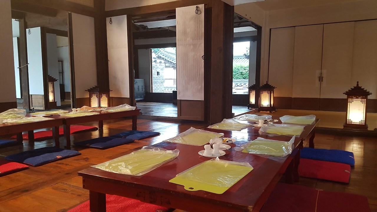 떡만들기는 이 한옥중 하나에서 진행된다...덕분에 -들어가지 마시오-안에 들어가, 천장이며, 바닥이며, 방방마다 구경할 수 있었다...1인당 만원이면 모양만 내는 떡만들기 체험으로 좀 비싸지만, 비오는 날 한옥안에서 빗소리 들으며 떡 만들어 먹는 재미가 좋았다....툇마루에 앉아 마당에 비내리는 모양도 보고, 소리도 듣고...높은 천장도 쳐다보고, Min Family's House민씨 가문집이라서 인지 천장이 높고, 공간이 정말 넓다..내가 본 한옥중 집안 공간이 제일 넓은 것 같다....한옥은 아담한줄 알았는데...이리 넓고 크구나...툇마루도 넓직하니, 좋다...한옥에서 제일 좋아하는 공간...내집이 짓는다면, 넣고 싶은 공간이 툇마루다...바깥 공기와 날씨를 그래로 느낄수 있는 실내도 아닌 밖도 아닌 이 열린 공간이 내가 한옥에 살았으면 하는 이유다... 바닦마루는 사람들이 손길이 뭍어 더 멋지다.