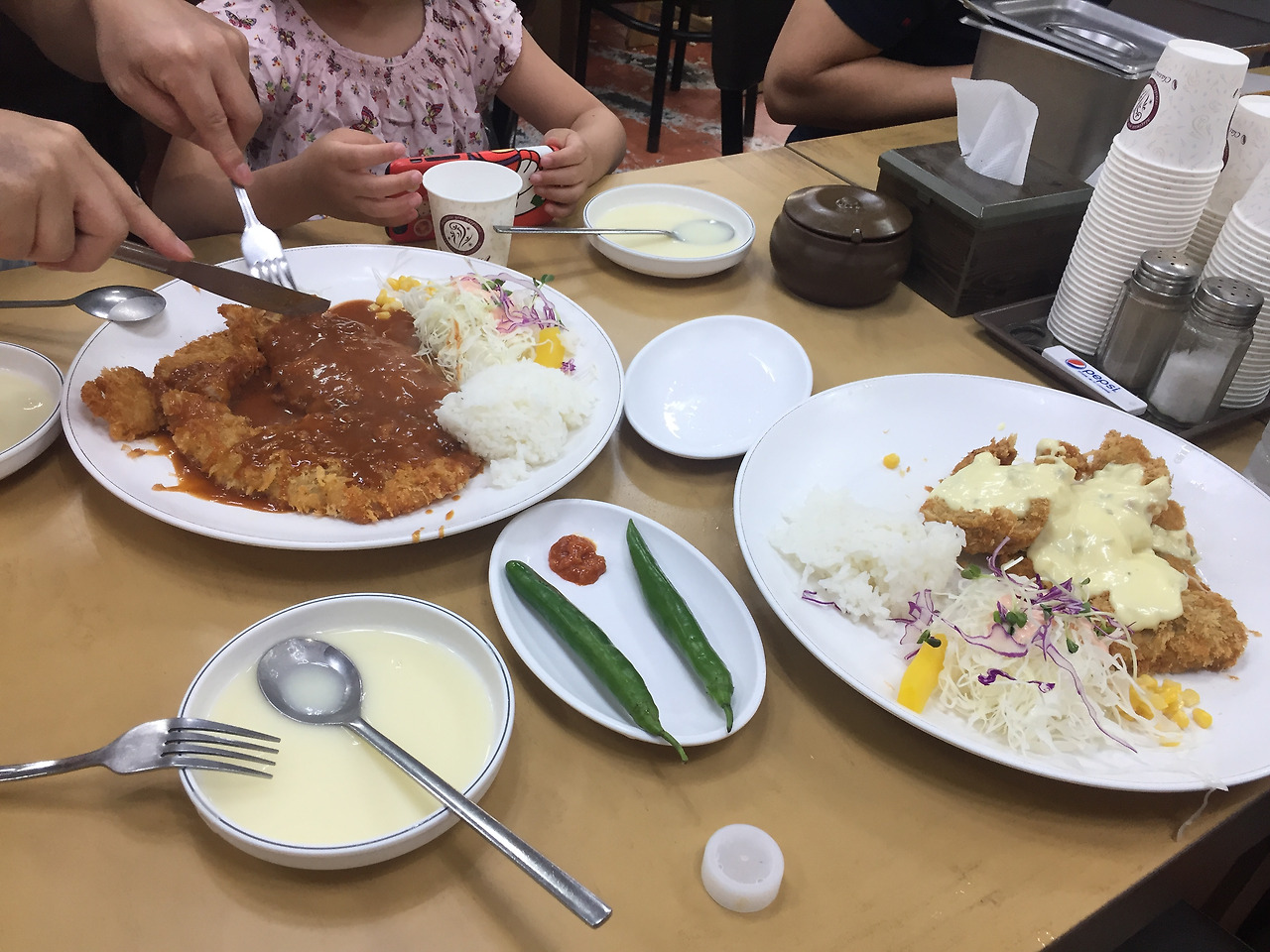 1시에 수업끝나고, 아이랑 남편이 학원앞에 pick up와서, 남산으로 일단 go.. 가는길에 배가 고프다..'아, 남산하면, 남산돈까스!. 급검색....다 원조가 붙었네..모르겠고...그냥 일단 간다...케이블카 타는 쪽 남산이다...이쪽은 처음 와본다...도서관쪽으로만 늘 오르락 내리락 해서...TV에 나온후로 장사가 잘 되었는지..하나 같이 원조, TV 연예인들 출연 사진을 붙여 놓았다...쭉 늘어서 있길래, 대충...들어간다 77년 시작한 40년 전통이라길래, 기대했다...며칠전, 백종원 골목식당에 여수 생선까스가 나오길래, 그렇지 않아도, 먹고 싶었다...돈까스 하나, 생선까스 하나를 시킨다. 오래된 건물을 내부만 살짝 리모델링 한것 같고, 오래된 느낌이 기대를 가중시킨다..고추 2개와 쌈장이 나오고, 돈까스, 생선까스가 나온다..생선까스 비주얼이 그닥..신선해 보이지 않았는데...맛은 더 안신선하다...기름에 쩐...생선도 거뭇하고, 러시아산이라는 원산지 표시도 벽에 눈에 보인다...기름맛이 많은 까스도 실망스러웠는데, 소스가 ..타르 타르 소스가 아니라, 그냥 머스타드맛만 난다..헝...11500원이다...10500원짜리 대표 왕돈까스 맛을 본다..소스..이게 무슨 맛이지? 생강.마늘맛이 너무 나서, 돈까스 맛을 모르겠는데...돈까스 만원이면 싼 가격도 아니다...크기도 강남역서 먹던 그 크기..강남역도 8000천원이면 먹는다..돈까스..맛도 준수하고...40년동안 한자리를 지켜온 것에는 박수를 보낸다...하지만, 맛은 지켜내지 못한것 같아 아쉽다...