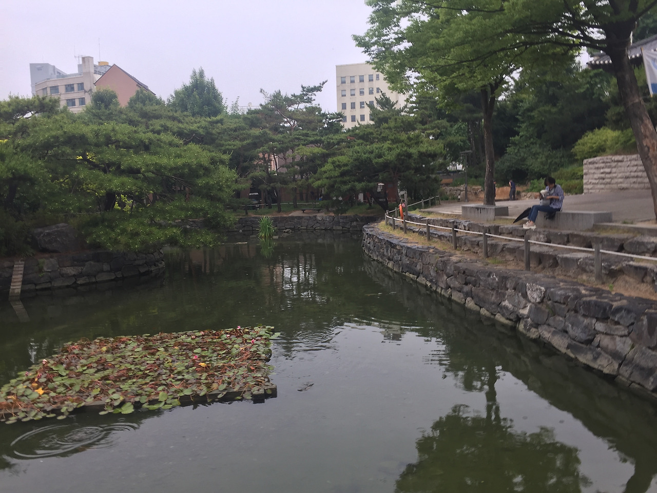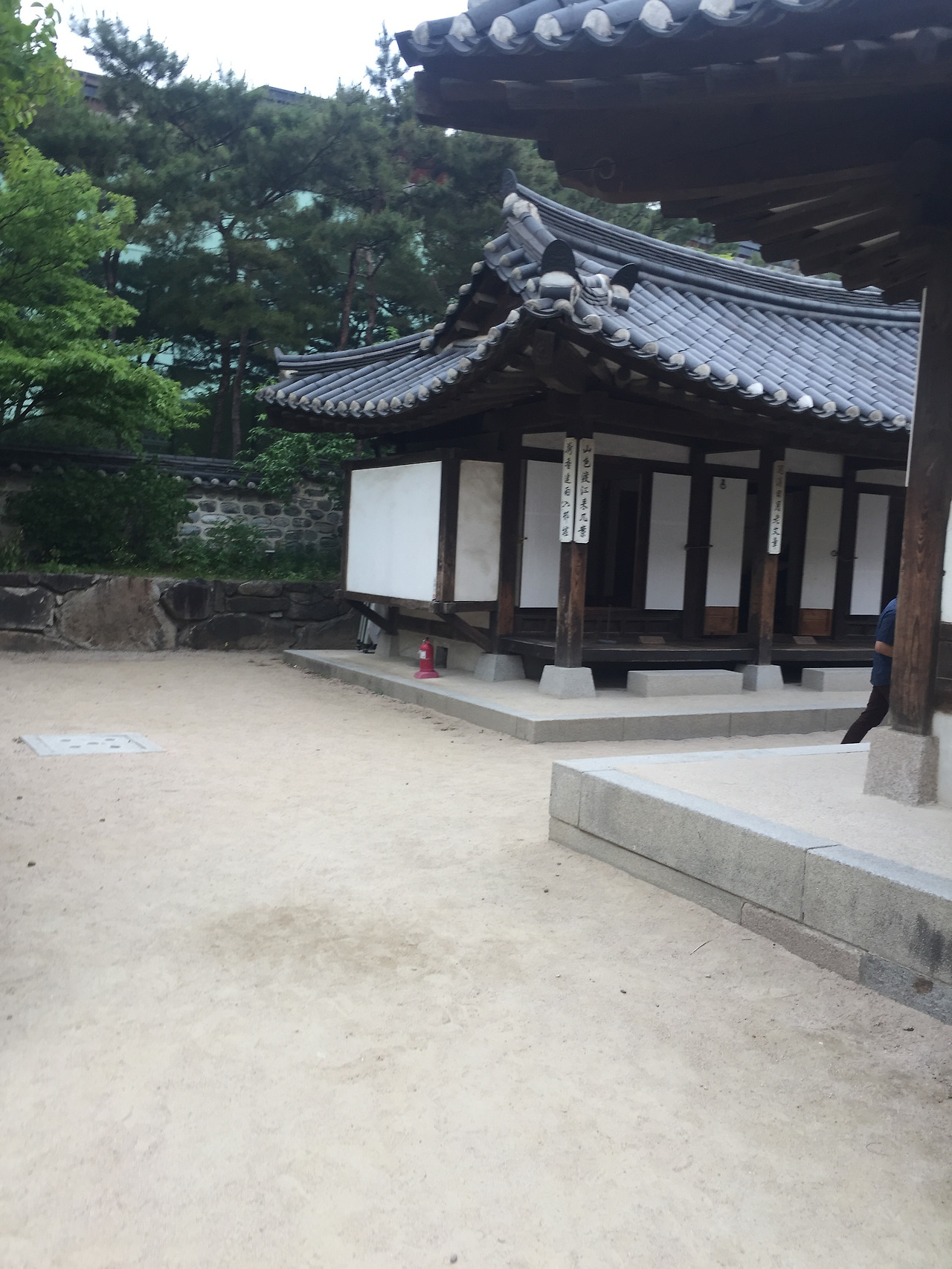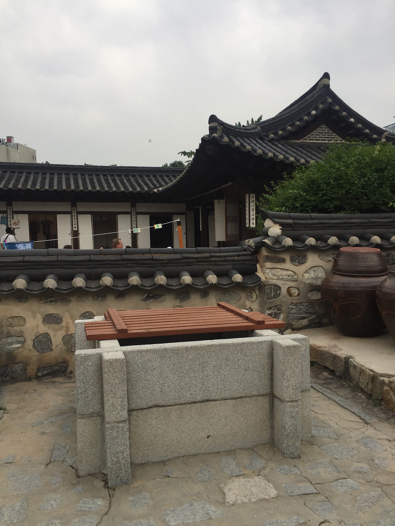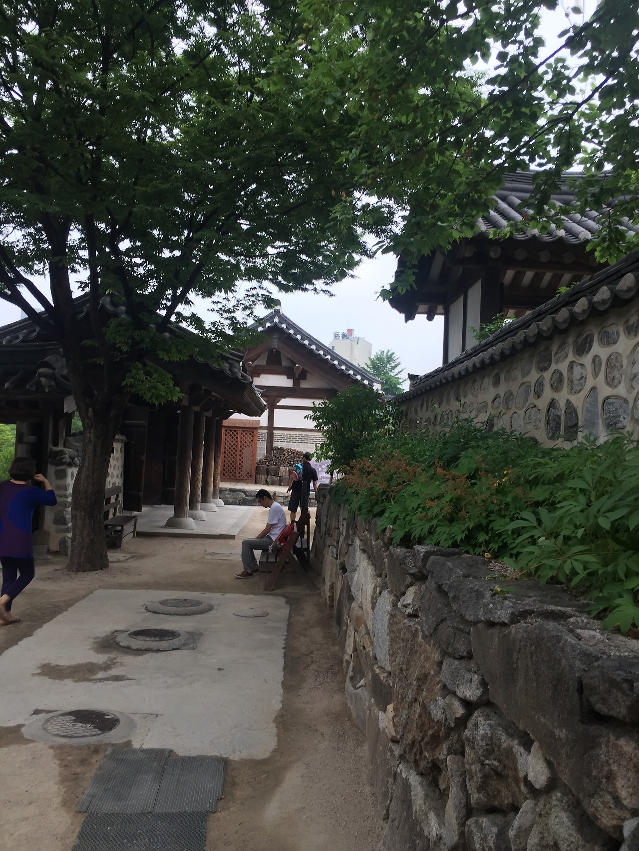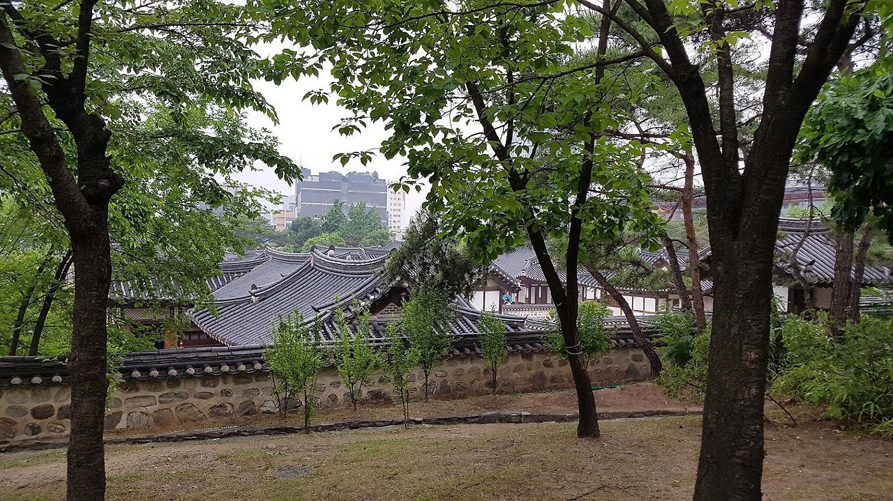 충무로 3번 출구 골목으로 들어가면 바로 한옥 마을이다...주차료도 그리 비싸지 않다...우리는 저공해 차량이라 반값...만차였지만, 조금 기다리니 자리가 난다...저녁에 비가 온다더니 날씨가 꾸물거린다...비가 오려해도, 비가 와도 좋은 나무와 한옥이 있는 마을이다...점심으로 기분이 상했지만, 한옥 마을에 오니 기분이 좋다...입구에 관리사무소 앞에 안내책자들이 비치되어 있고, 조금 들어가니 연못과 정자가 나온다...정자쪽 문으로 들어가면 한옥이다..첫 마당은 활만들기, 활쏘기 등등 체험 마당이 있다. 활만들기도 사전 예약을 받는듯 하다...5채 정도의 한옥들이 있다...앞의 설명서를 보니, 삼각동, 삼청동, 관훈동, 제기도, 오진동등에서 옮겨놓은 또는 복원해 놓은 한옥이란다....1850-1907년 사이에 지어진 한옥들이다....민씨 가문의 집, 화평 부원군 윤택영의 집, 김춘영 장군 (General of the Five Commands)등등 대단한 권세가 들의 집이라 그런지, 그동안 보아온 한옥보다 규모가 크다...넓직한 공간들...뒷뜰도 넓고, 처마도 크다...방들도 넓직 넓직하다...한옥의 나무들이 내가 알고 있는 한옥의 색체보다 검고 진하다..