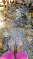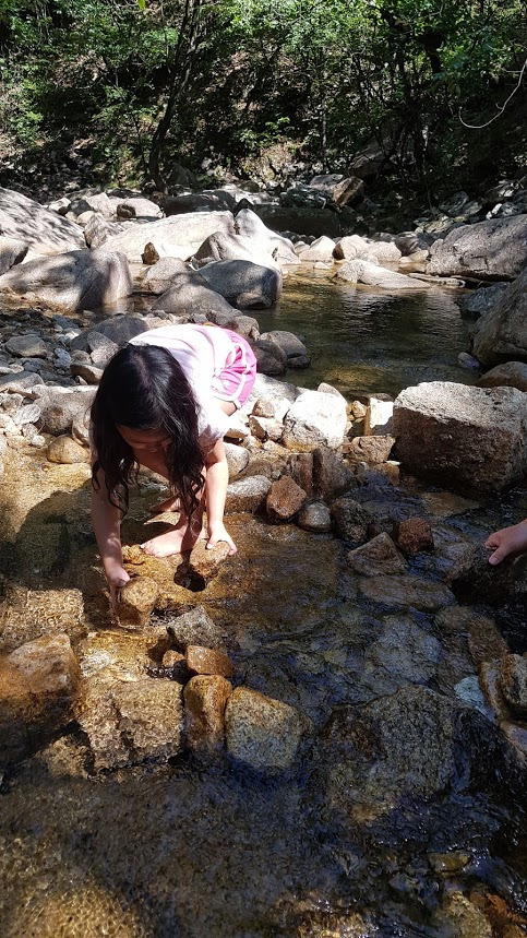 어머 여기도 너무 좋다...발이 너무 시원해서, 고맙다고 한다...맑고, 시원한 계곡물에 발담그로 있으니, 마음이 평안해 진다...그사이 돌맹이 움직여서, 목욕탕을 만드는 딸과 남편...귀엽다...