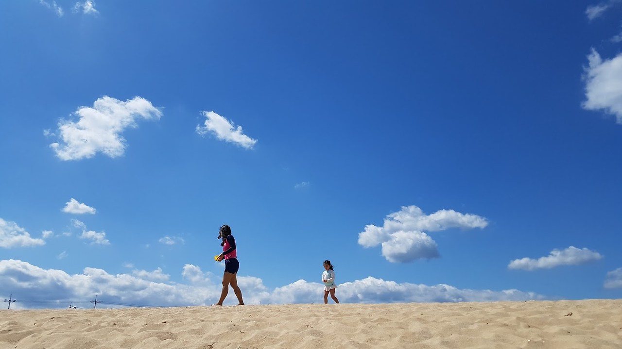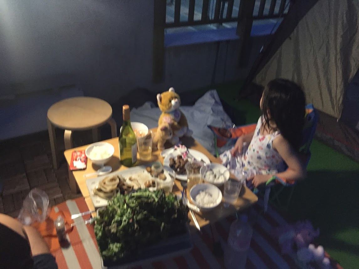 이번 여행 컨셉은 '캠핑' 이기 때문에 캠핑 분위기를 내야 한다...숙소 도착하자 마자 텐트 치고, 캠핑의자랑 테이블 깔고....딸이 너무 좋아한다..ㅎㅎ 오후에 앞바다서 수영좀 하고...