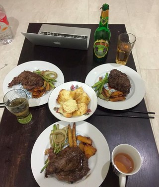집에와서 일좀하다가 저녁으로 등심스테이크 구어먹고 또 일좀 하다가 굿밤