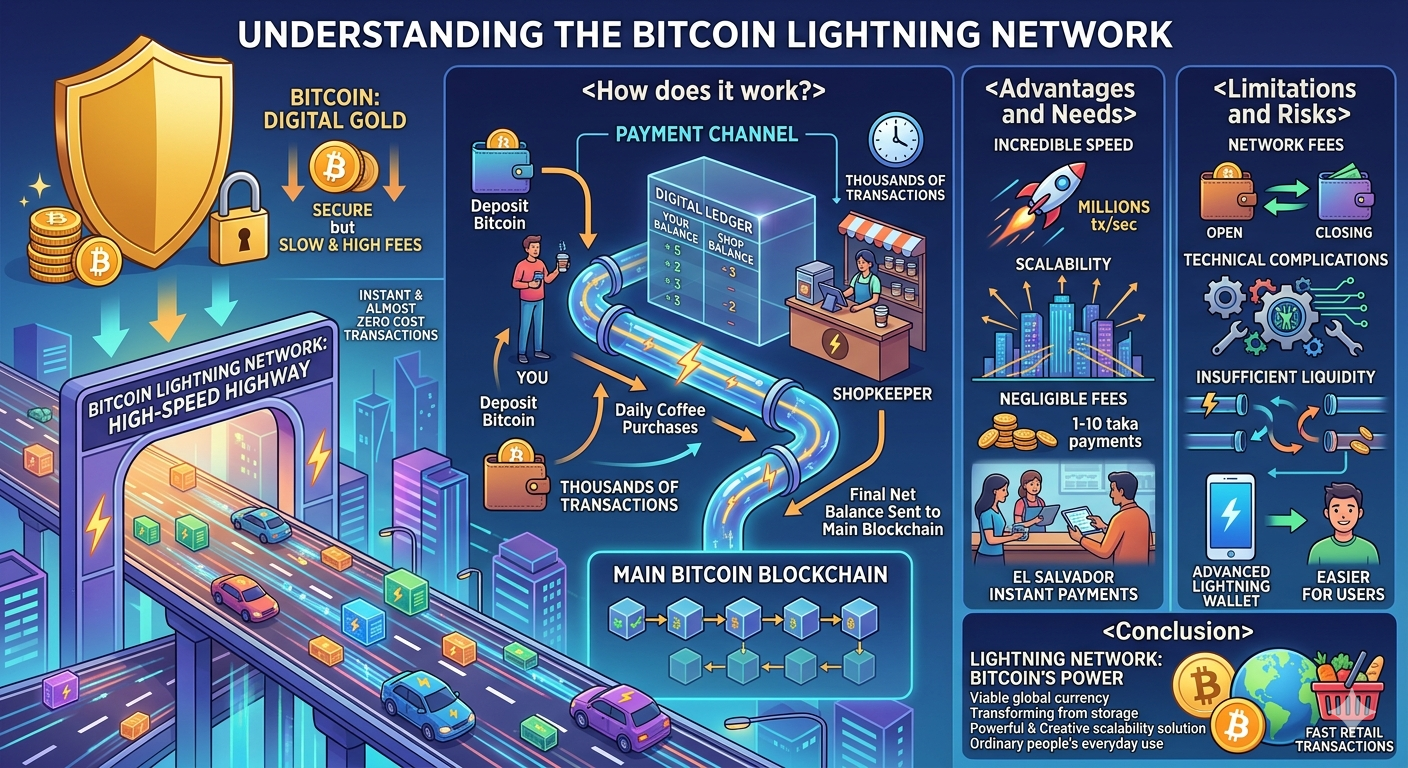 The biggest advantage of this technology is its incredible speed and scalability. The Bitcoin main network can only process 7 transactions per second, while the Lightning Network is capable of handling millions of transactions per second. Secondly, its transaction fee is very negligible, which is ideal for small amounts or micropayments (such as 1-10 taka). In addition, it reduces the pressure on the main blockchain, making the entire ecosystem more efficient. Currently, this network is being used to make instant payments with Bitcoin in restaurants or supermarkets in many countries, such as El Salvador.