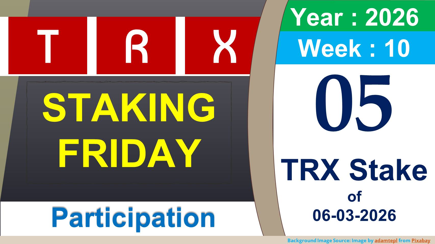 TRX Staking : Week 10 of 2026 (5 TRX Stake) | Total TP: 7642