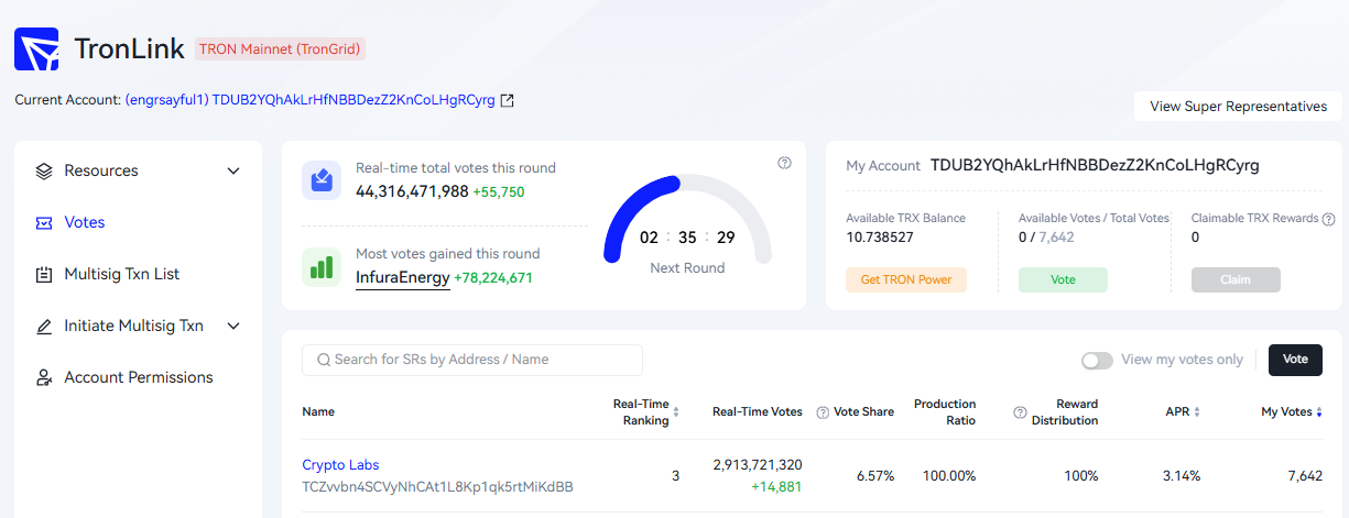 04How to vote to Super Representatives with your Staked TRX